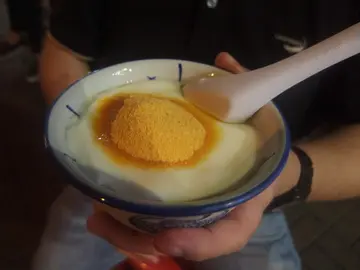 来大埔,尤其是大埔墟,除了可以去街市熟食中心寻找美食之外,在大明四里内,也有足够的美食来灌醉你。最简单,最容易消化,而且基本上人人都会喜欢的,就是豆腐花。而大埔墟,曾经也是一个豆腐花的兵家必争之地。当年的三家豆腐花 (现在只剩两家),都是以『亚婆』做招牌的。原因就是,『亚婆』在自立门户之前,曾经一家叫《果香林》的小食店打工,专做豆腐花,后来就再在最原始的位置分折出一间《旧果香林》出来。成就了三家美味豆腐花店的盛况。是日,人在大埔,人在大明里,想起豆腐花的我们,好自然就会想得到,《旧果香林》。最开心,都是站在街上,手拿著一碗豆腐花立食。尤其是夜晚,风凉水冷,人人围著小店,吃热的也好,吃冻的也好,吃上一碗中式糖水也好,都份外感风味十足。这一天,我手上的是一碗冻的豆腐花,虽是冻,但入口依然是香滑。来身有不太甜的糖水陪衬,食用时,再加上黄糖,感觉更加之香口。冻食已经非常之香滑,热食就更加之滑溜溜啦。改日路过,我买了两支豆浆慢慢在车上享用。我选择了微甜的豆浆,以少少甜来带出浓浓的豆香味。豆浆,不用花巧,不用多口味,只需要微微甜同浓豆香,就已经好好。豆腐又香又滑,已经是好好了。在大埔墟,我不太敢铁定说那一家豆腐花比较好,只可以讲给大家听,两家豆腐花店都要试一下。…查看更多