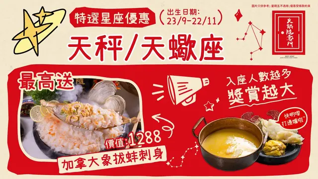 今日朋友仔话想食海鲜, OPENRICE 揾下铜锣湾区有无. 有间一人一锅蒸气海鲜火锅啱晒. 餐厅环境舒适, 仲有竹帘分隔,把它放下, 可令客人更有私人空间感 有4款唔同价位既套餐, 套餐名都几得意. 有八府巡按, 九五至尊, 内务总管, 九品芝麻. 咁我地今次试左其中两款. 九品芝麻 $258海鲜有白蚬、大蚬、北寄贝、虾、鲍鱼同鲜鱼片, 全部新鲜鲜甜, 口感丰富。肉类可 3拣2咗 美国肥牛/ 豚肉/鸡肉,鸡肉滑嫩,豚肉就正常唔嚡. 仲有三宝丸 . 小食炸物章鱼丸. 八府巡按 $488 当然厉害D啦, 有多款海鲜,特别在有龙虾!呢个套餐丰富好多!海鲜拼盘有龙虾、鲍鱼、元贝、蛏子、贵花蚌、白蚬、虾, 肉类仲有安格斯牛肉!龙虾新鲜啖啖肉, 肉嫩爽口仲有好多膏,其他海鲜都好新鲜,蚬类全部都处理得好好完全无沙。套餐仲包前菜沙律、炸饺子同芝麻鸡翼,同埋蔬菜拼盘。 最后拣咗南瓜芋头粥做粥底,吸收晒海鲜嘅精华,好鲜甜!另外餐厅做紧推广, 只要follow 餐厅社交平台 就可以抽奖, 我地就抽中左一份沙白, 同一罐可乐. 呢间一人一锅蒸海鲜值得推介!食材新鲜,服务周到!@boatboatsteam船涡铜锣湾谢斐道500号维安商业大厦3楼…查看更多