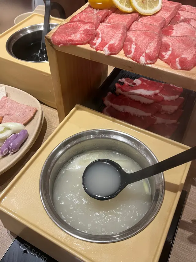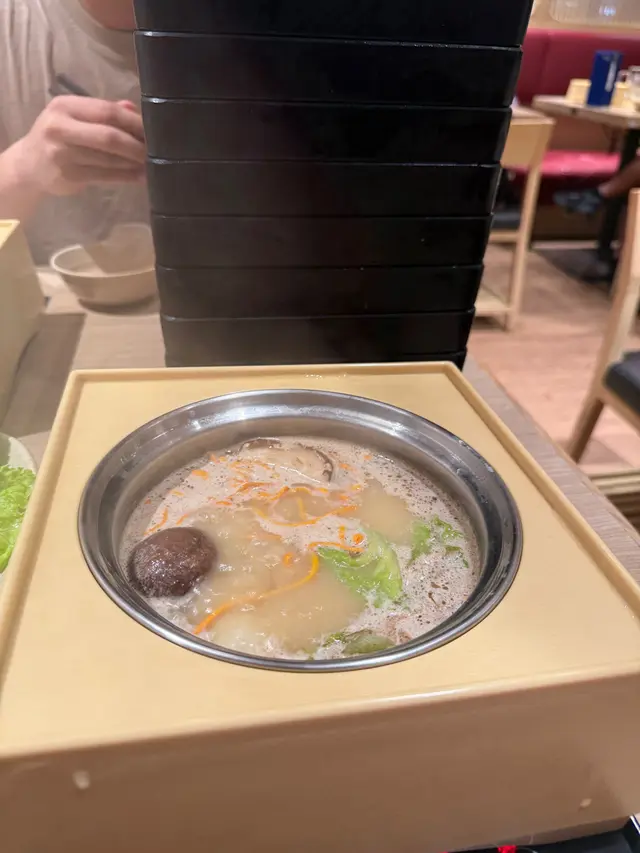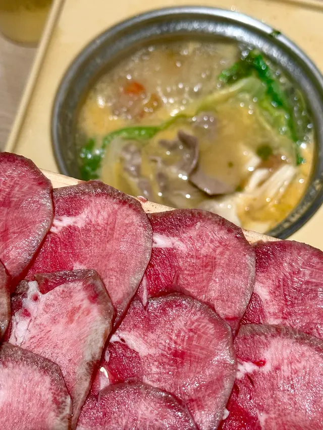 鑽石山荷里活廣場三樓門面淡素,入到去光線幾柔和,坐得幾舒服湯底揀咗最基本嘅昆布清湯,清清地唔會搶走食材風頭薄薄嘅牛舌喺湯裏面輕輕游兩下,變咗淡粉色就撈起入口肉甜我最後牛舌叫左好多碟菜籃嘅蔬菜都幾新鮮尤其係個娃娃菜,索咗湯之後格外清甜飲品方面唔太多除咗汽水同道地烏龍茶,仲有部咖啡機可以自己沖食完濃味嘢,整杯美式或者冰涼烏龍,都好解膩最尾嘅甜品幾款雪糕試咗牛乳味,奶香醇厚口感滑溜呢度唔算好華麗但係由湯底到食材,都係OK的, 對得住價錢查看更多