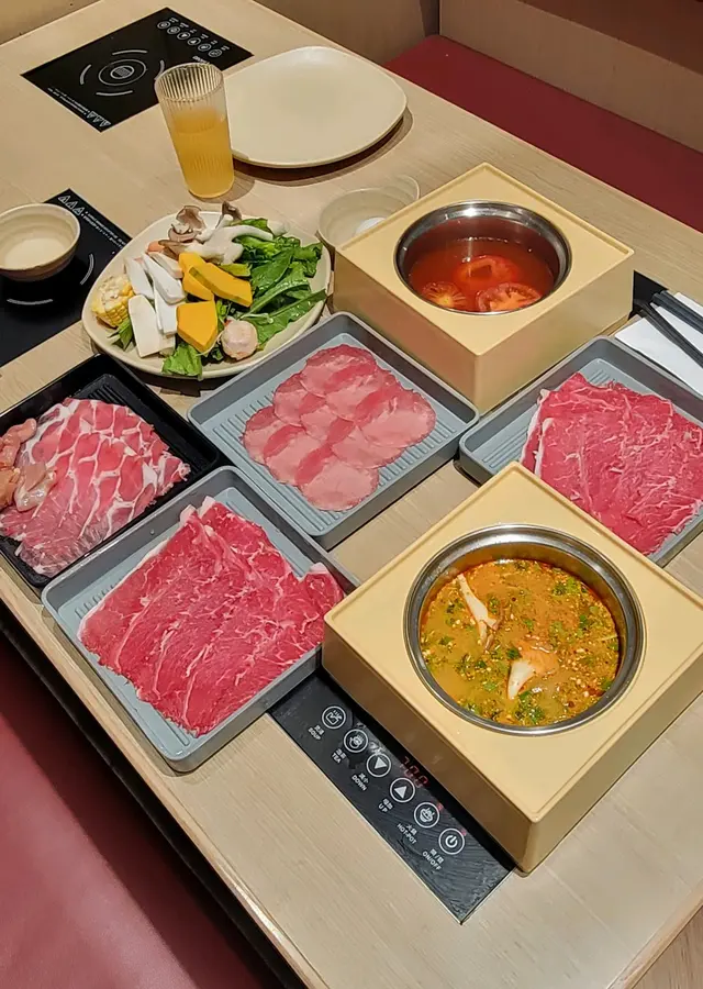 平時最鍾意去食日式火鍋,鍾意一人一鍋可以揀自己鍾意嘅湯底慢慢食,仲夠晒衛生。呢間分店座位都唔少,自助區空間都夠大,店員服務都好親切。湯底有七款常設款式,同埋四款期間限定,難得嚟到梗係試吓兩款期間限定嘅湯底啦,所以最後就揀咗蕃茄壽喜燒湯底,同埋海老豚骨湯底。前者仲會附送一隻日本生雞蛋,可以點牛肉食,令牛肉好滑溜,後者嘅蝦味好重,帶出食材嘅鮮味。今次嗌咗嚴選牛任食套餐,除咗其他套餐都有嘅豬肉同雞肉之外,呢款套餐仲可以任食嚴選牛肉同埋牛舌,係更加高級嘅牛肉,只要用QR code落單,肉類都好快送到。至於其他火鍋配料,都可以喺出邊自選區到拎,有好多唔同嘅蔬菜、類、面類等等。仲有唔同嘅飲品同醬料選擇。最後仲可以自己唧埋雪糕食,仲有好多唔同Topping可以揀添!查看更多