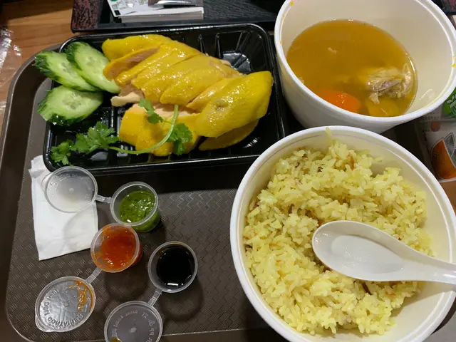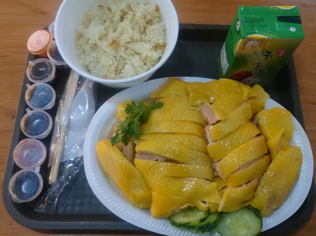 深水埗西九龍中心food court就非常多選擇既,突然今日就好想食海南雞。呢間海南雞食過就知好抵食。$43有湯有野飲有飯有雞,而且仲有跟3個醬,綠色應該係薑蓉,紅色係小小辣,黑色就甜豉油。個雞既份量都多,真係做爛曬市。雞既味道就正常唔嚡既。雞配醬真係好夾。個湯我唔小心飲左一半太好飲啦,入面好足料好多湯渣,味道係意外地鮮甜。去到飯,我覺得個飯就太溜,不過都入到口既。其實咁多野都係$43。我覺得無野可以挑剔啦。建議大家有機會去試下,因為係food court 所以環境都唔會預好好。查看更多