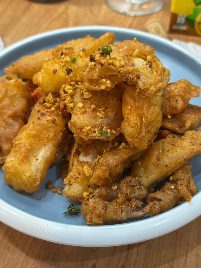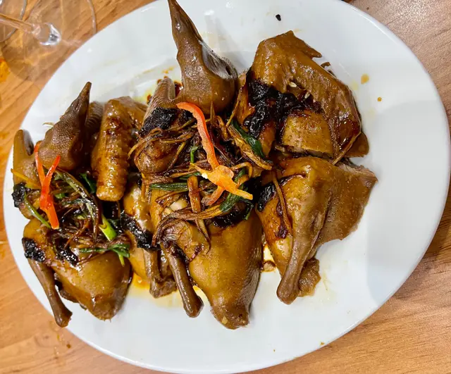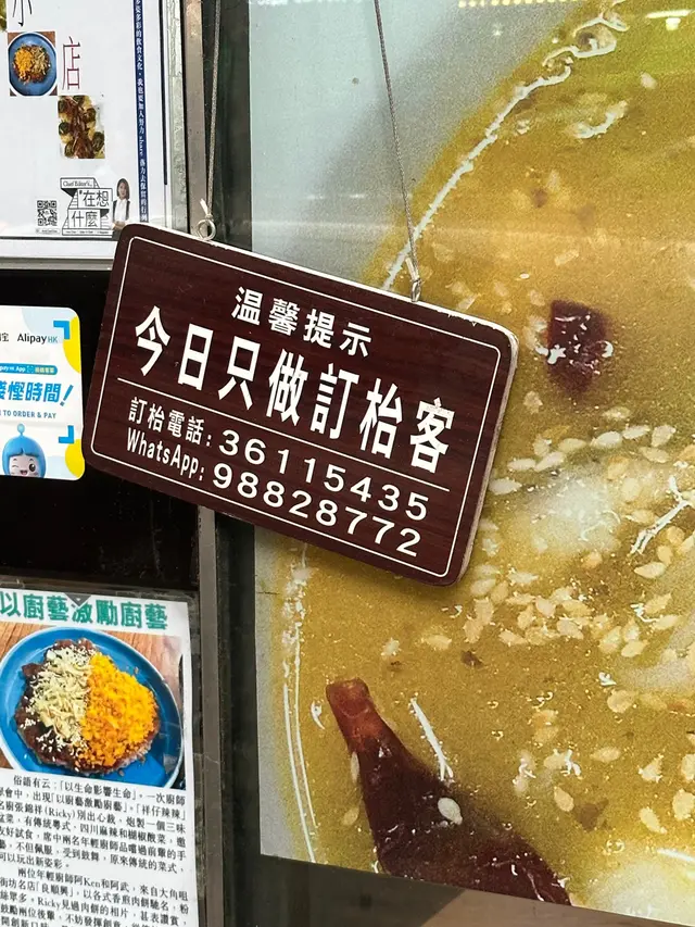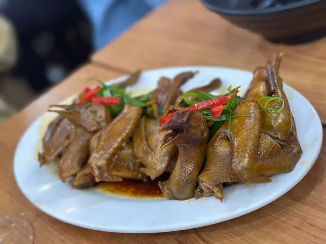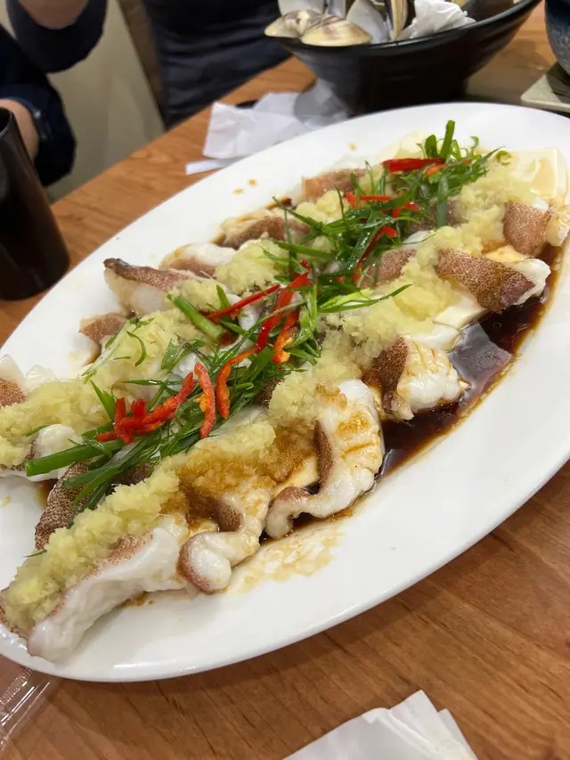 朋友帶路,話發現大角嘴一親民小店,小店細細,所以在what’s app 預約時間及菜單,溝通過程中已有良好感覺,還主動教路到達食店,一讚。食店內以長枱方式擺放,估唔到食店細細,還有酒杯提供,方便好酒的為食貓。牆上面標誌在菜單,已粉筆字寫上,證明菜單定期更新⋯⋯椒鹽九肚魚$178~粉漿較厚,幸而味道未算太濃,配當晚的白酒,適合在等齊人前作配酒享用。泰式糟鮑魚$280~$40/隻,人頭計很有彈性,入味爽彈。葱油滷乳鴿$190~$95/隻,當晚我們點了兩隻,很入味,是當晚筆者至愛。東星班二食$840(二食價錢)~一食走肉薑蔥蒸: 起肉啱晒懶人吃,豆腐墊底夠清新,㕑子落薑去蒸東星,筆者反而覺得令魚的質感失色。二食椒鹽魚骨~反觀魚骨作椒鹽,二食比一食更吸引,作為下酒小吃相當夾檔。蟶子炸米底$580~平時煎米粉底,米粉必定在豉椒蟶子的底部,這裡剛好相反,炸米粉放在上面,明顯哋要食客吃其脆口質感,雖然賣相未算吸引,但也吃出㕑子一份心思。豉油王白菜炒麵$59~原來這炒麵是中午餐單價錢,食店知筆者想吃,中午價給予我們,最後㕑子加了白菜配合豉油皇炒麵,先講豉油王炒麵,炒得夠乾身,一讚,最後加上那幾條白菜,很有媽媽的感覺⋯⋯隨意配,有乜食乜,有趣,筆者問有否辣椒醬?店員說沒有,反而有自家辣椒油,味道相當唔錯,最後我們也買了幾樽回家享用。當晚還點了以下,但由於其中一朋友遲到,所以一開始上菜時,來匆匆去匆匆,因為實在太肚餓忘了拍照,抱歉⋯⋯椒鹽鮮魷$109~同椒鹽九肚魚一樣,粉漿比較厚,但味道好。胡椒魚湯沙白$298~首次到來的話,筆者會覺得是必點項目。上湯蝦干什菜煲$89~女士們喜歡多菜項目。整體來說:氣氛好,多是熟客,店員態度親切,感覺很有家庭feel。查看更多