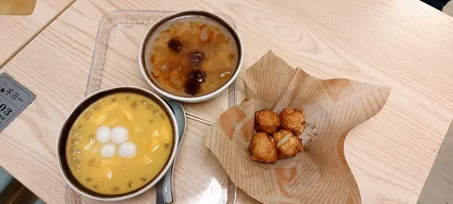 芋圓一🌐@taronehk天氣熱到懷疑人生,連風吹過都係熱辣辣🥵只想搵啲透心涼嘅甜品降下火🪭由樓梯一級級行上去,牆身已經係一幅幅黑白插畫牆🦓 手繪風格,充滿想像力,每一幅都有自己故事✍🏼 配上抹茶綠嘅梳化,色調溫柔🧩傳統仙草芋圓 🇹🇼仙草|紅豆|薏米|白玉|粉菓|黑糖蒟蒻|芋圓|黑糖汁每啖都係唔同texture👾 震揗揗又勁大舊嘅仙草坐係碗中♟️芋圓、蕃薯圓、紫薯圓都係主角,啖啖煙韌🍠 紫、黃、橙色排到成朵花咁🌼椰汁海燕窩芋圓 🪹雪耳|雪燕|蒟蒻|白玉|粉菓|芋圓|椰汁行滋補路線💃🏻椰汁夠香滑唔膩口🥥 養生雪耳同雪燕超加分🙂↕️ 啱曬夏天keep住靚靚肌🌞炸燒賣4粒🏵️炸魚片頭4件📐椒鹽花枝丸4粒🏀全部即炸上枱🔥灑上椒鹽粉,鹹香惹味🧂凍熱鹹甜,間住間住食最爽😗自己碗自己拎,食完有手尾拎埋落樓🫰🏻…查看更多
