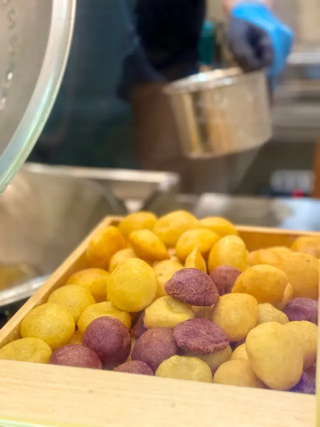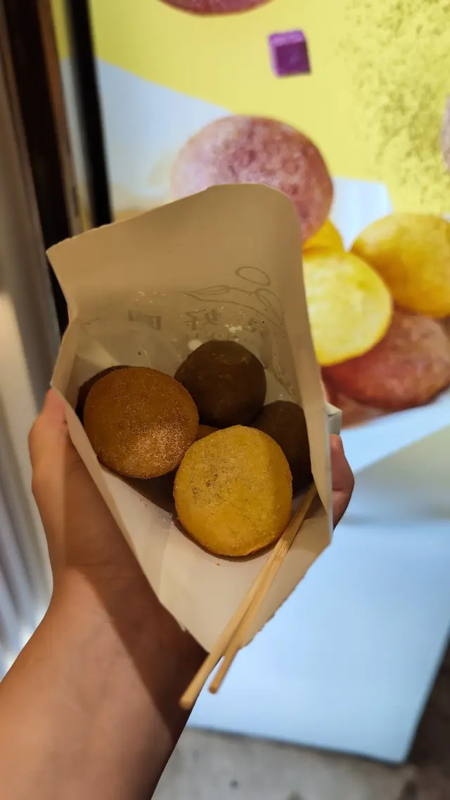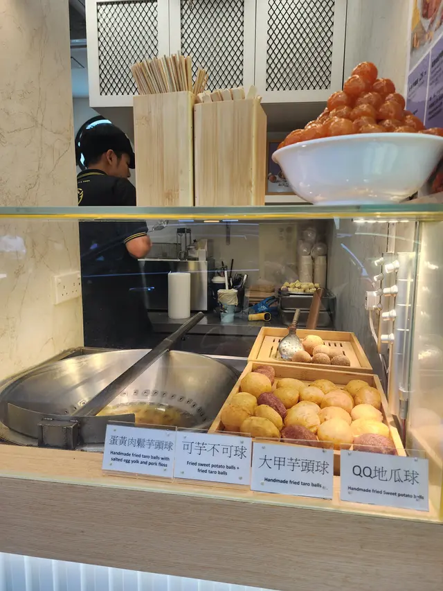 尖沙咀的「芋見好圓」的地瓜球沒有華麗的包裝,沒有複雜的配料,它就是如此純粹的街頭小食。外酥內Q的極致口感地瓜球沒有過分甜膩的造作,只有地瓜本身的天然甜香在口中緩緩釋放。偶爾咬到帶著地瓜纖維的部分,更添幾分真實感。「即叫即炸」是一種品質的保證。看著店員將一顆顆生坯倒入熱油中,用漏勺輕輕按壓、翻動,看著它們從沉底到浮起,從白色變成金黃,從瘦扁變得圓滾。等待的幾分鐘變得格外值得,因為你知道即將到手的,是處於最佳狀態的地瓜球。大甲芋頭球真材實料、綿密香濃的芋頭內餡。外皮經過油炸後呈現誘人的金黃色帶點微紫。 外層酥脆,口感是真實的「芋頭塊」感,能吃得到芋頭的纖維和顆粒,滿足感十足。QQ地瓜球 外酥內Q、空心有嚼勁、輕盈不膩。最大的特色在於其口感,外皮薄脆,內部因為油炸過程中的擠壓而是中空或充滿大氣孔的狀態,吃起來非常有彈性和嚼勁!口感輕盈,像在吃會彈牙的空氣感點心,讓人一口接一口。蛋黃肉鬆芋頭球甜鹹交織、口感層次豐富的奢華升級版。外層是酥脆的麵衣和綿密的芋頭泥,內層則是鬆軟的鹹蛋黃和酥香的肉鬆。旺角、大角咀、屯門、上水都有分店台灣夜市小食,值得一試!…查看更多