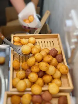 經過尖沙咀口痕決定掃下街,好掛住台灣夜市嘅小食!之前喺台灣夜市大排長龍嘅地瓜球,宜家竟然喺香港都有得食!呢間小食店嘅地瓜球即叫即炸,旺角、大角咀、屯門和上水都有分店!🟠QQ地瓜球一份有5粒,size大過粒乒乓波🤣分別用番薯同紫薯整成,外皮炸得金黃酥脆,咬落去QQ彈牙,內裡軟糯香甜,充滿濃郁嘅地瓜香🥰仲有六款調味粉可以揀:原味、朱古力、胡椒、梅子、糖粉同海苔粉,選擇超多!今次試咗海苔粉同梅子粉,海苔粉帶咸香味,梅子粉酸甜開胃,兩款都為地瓜球增添唔同嘅風味,食完一粒想再食一粒,超滿足!🟣大甲芋頭球芋頭控嘅福音😍外皮同樣炸得香脆,咬開後入面滿滿嘅芋泥,質地綿密細滑,散發濃郁嘅芋頭香,甜度剛剛好~每一啖都係芋頭嘅精華,食落去既滿足又幸福🥰🟠蛋黃肉鬆芋頭球同樣以香濃芋泥為主角,入面裹上爆多嘅肉鬆,鹹香滿溢,仲有沙律醬喺面頭點綴,增添一絲creamy嘅口感😍成粒鹹蛋黃嘅濃香同肉鬆嘅鹹香完美融合,配上綿密嘅芋頭內餡,味道層次豐富,鍾意鹹甜風味嘅朋友,呢款一定唔會失望🤣🟣可芋不可球 (QQ地瓜球+大甲芋頭球)可芋不可球係地瓜球同芋頭球嘅Mix組合!想試晒兩款嘅就可以揀呢一隻☺️…查看更多