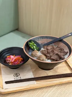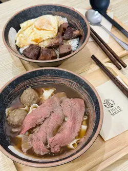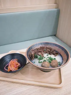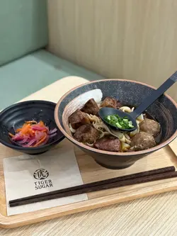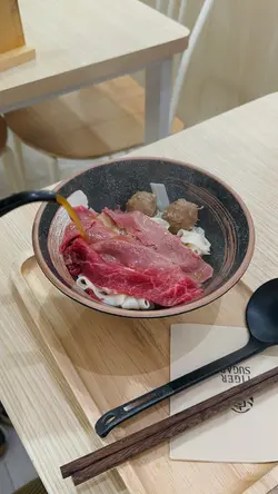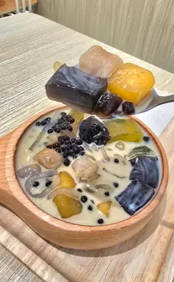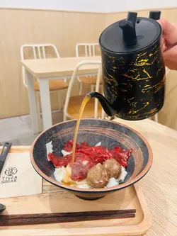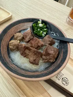 今日午餐是滿滿的寶島風味,由主食到甜品沒有一絲令人失望!堂灼騸牯肥牛牛丸配關廟刀削麵~侍應更為我們送上滾燙的紅燒牛肉湯底,讓我們加入大碗中的入肥牛、牛丸和刀削麵,即時灼熟享用並感受最新鮮的時刻,牛肉味濃郁鮮甜,牛丸爽彈鮮美,爽滑麵條伴紅燒牛肉湯底吃,香鮮味濃,別有一番風味。沙嗲騸牯牛冧肉煎蛋湯麵~沙嗲味道較淡,不會搶去湯頭的鮮味,牛冧肉肉質彈牙軟滑且帶有濃郁的牛肉鮮味,加煎蛋的湯麵,宛如綿上添花。招牌手工竽圓~仙草·珍珠·粉粿,湯底是黑糖鮮奶。黑糖仙草愛玉刨冰~仙草凍·愛玉·咖啡凍·布丁。兩款甜品都有合心意的選材,最重要甜度恰到好處,而且很有飽肚感,還很有寶島風味和滿足感!…查看更多