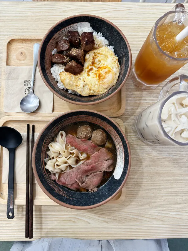 見有谷友介紹過屯市的芋見好圓啲牛好好食,仲係屯門店限定,是日便約朋友黎試試。下午時段來到,生意太好幾款牛肉都賣完啦🥲咁試唯一的牛冧肉,再叫份品先。⭐仙草凍奶綠 & ⭐阿里山烏龍茶飲品最快ready,老虎堂出品品質有保證😆奶綠要了半糖少冰,呢個甜度啱口味。另一杯凍烏龍茶去甜,一陣食甜品嘛,飲品就不要加糖了,清茶茶味幽香,正。⭐香煎騸牯牛冧肉牛丸湯米湯米賣相有點寂寞😅有返啲青蔥會唔會好啲?講返啲牛先,牛冧肉真心正,牛味十足又軟嫩🤤名不虛傳好好食!牛丸爽好彈牙,個湯底鮮味唔膩,係正喎!⭐香煎騸牯牛冧肉煎蛋飯朋友的碗飯賣相ok,牛肉同樣正,煎蛋半生熟,蛋汁撈飯好好食😋⭐芋圓3號甜品選擇太多啦,揀黎揀去決定要個3號,貪佢有紅豆、小丸子同珍珠,鍾意煙煙韌韌有咬口野,芋圓真材實料好食,湯水底揀左黑糖鮮奶,好味好味😋⭐黑糖仙草愛玉刨冰仲試左刨冰添呀~估唔到咁大碗😱揀左呢款有仙草、愛玉、布丁、咖啡晶嘅口味,全部係軟軟滑滑嘅組合,刨冰上面淋了黑糖好香甜😋夏天食真係好消暑,讚😍新餐有優惠,飲品又有、跟餐甜品再有,估唔到叫左咁多野,人均都唔使一舊水,抵食👍…查看更多