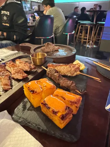 最近同朋友去兰桂坊玩行过见到有间门口色彩缤纷店舖叫做芝加哥串烧酒场自成一角气氛环境都很好 一于试吓先! 入面主打系食串烧同埋饮酒钟意同朋友倾偈食嘢睇球赛不容错过用QR code落单,方便快捷 而且佢可以俾你拣咗辣度先人气鸡皮墨鱼滑+芝士鸡肉串+鸡肉软骨棒加蜜糖鸡翼鸡皮脆口墨鱼滑弹牙 好impressive!送酒一流烧鸡皮 呢个个人认为系必食 鸡皮,烧到好似薯片咁脆 每一口都好滋味黑松露酱烧牛油果 呢个真系牛油果爱好者嘅至爱 牛油果烧到溶溶地加埋黑松露同埋沙律酱食口感丰富creamy极品即烧乳猪 外皮烧到薄脆 肉质嫩滑不臊 而且有啲香甜嘅叉烧酱汁 估唔到喺呢度都食到高质嘅串烧炭烧猪颈肉外皮烧到好香脆加埋𠮶啲油脂香浓弹牙极品红东升斑柳 鱼肉质地结实 充满鱼香油脂 一定要趁热食!招牌茄子烧 茄子烧到软绵绵加上大量蒜头酱汁同吃 又系送酒神器汁烧京葱串 酱汁香浓甜甜地甜 京葱爽脆无渣 正炸厚切薯片 热辣辣卜卜脆最钟意食薯仔!咖喱鱿鱼串 唔会烧到老晒咬唔开外脆内软 盐烧鲜淮山 好开心喺呢度可以食到鲜淮山 厚切咁烧 外面焦香 入边甘甜带清香我哋都点咗sangria 同月桂冠 浊酒pinot Noir Gustave Lorentz Reserve 去衬吓啲串烧个人认为月桂冠 浊酒 的口感及稻米香味重口绵滑 配搭肉类及烧烤料理最佳最后我哋食咗日本一口番薯仔烧 作为甜品番薯仔黄心烧得绵密 ,为呢一餐画上甜蜜句号下次会再嚟试吓其他款式嘅串烧,而且呢度服务甚佳 也会为我哋介绍串烧值得一赞…查看更多