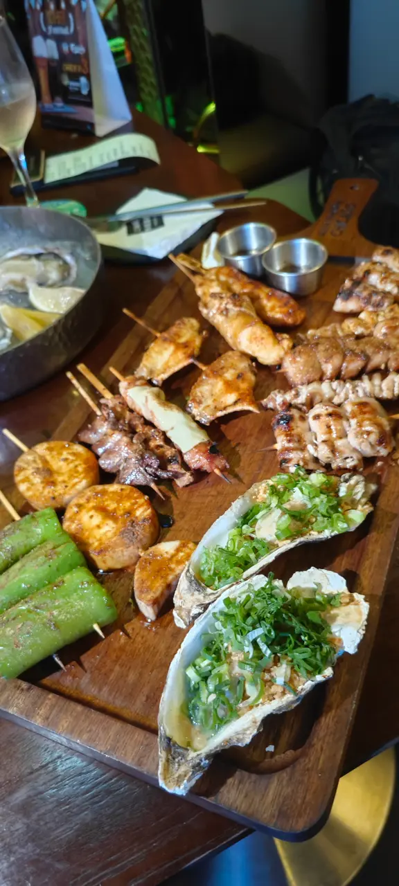 最近同朋友去蘭桂坊玩行過見到有間門口色彩繽紛店舖叫做芝加哥串燒酒場自成一角氣氛環境都很好 一於試吓先! 入面主打係食串燒同埋飲酒鍾意同朋友傾偈食嘢睇球賽不容錯過用QR code落單,方便快捷 而且佢可以俾你揀咗辣度先人氣雞皮墨魚滑+芝士雞肉串+雞肉軟骨棒加蜜糖雞翼雞皮脆口墨魚滑彈牙 好impressive!送酒一流燒雞皮 呢個個人認為係必食 雞皮,燒到好似薯片咁脆 每一口都好滋味黑松露醬燒牛油果 呢個真係牛油果愛好者嘅至愛 牛油果燒到溶溶地加埋黑松露同埋沙律醬食口感豐富creamy極品即燒乳豬 外皮燒到薄脆 肉質嫩滑不臊 而且有啲香甜嘅叉燒醬汁 估唔到喺呢度都食到高質嘅串燒炭燒豬頸肉外皮燒到好香脆加埋嗰啲油脂香濃彈牙極品紅東升斑柳 魚肉質地結實 充滿魚香油脂 一定要趁熱食!招牌茄子燒 茄子燒到軟綿綿加上大量蒜頭醬汁同吃 又係送酒神器汁燒京蔥串 醬汁香濃甜甜地甜 京蔥爽脆無渣 正炸厚切薯片 熱辣辣卜卜脆最鍾意食薯仔!咖喱魷魚串 唔會燒到老曬咬唔開外脆內軟 鹽燒鮮淮山 好開心喺呢度可以食到鮮淮山 厚切咁燒 外面焦香 入邊甘甜帶清香我哋都點咗sangria 同月桂冠 濁酒pinot Noir Gustave Lorentz Reserve 去襯吓啲串燒個人認為月桂冠 濁酒 的口感及稻米香味重口綿滑 配搭肉類及燒烤料理最佳最後我哋食咗日本一口番薯仔燒 作為甜品番薯仔黃心燒得綿密 ,為呢一餐畫上甜蜜句號下次會再嚟試吓其他款式嘅串燒,而且呢度服務甚佳 也會為我哋介紹串燒值得一讚…查看更多