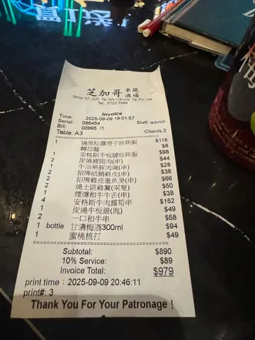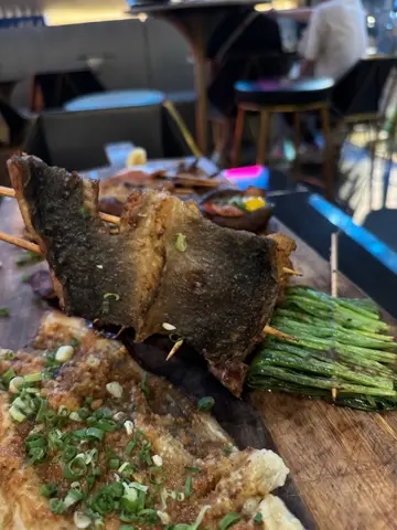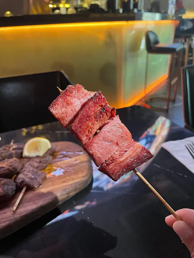 芝加哥已经系第三次黎帮衬,好食既餐厅先会播陈完一次又一次再一次🤩环境方便同上两次黎都系一样,环境设计非常注重氛围,灯光较为偏暗,好适合饮酒同埋同朋友倾偈👍🏻👍🏻而且背景音乐播住90年代既流行曲,仲可以一边听歌一边食野饮酒。而且店内的装饰亦都系好有心机,除左灯光外,亦有唔同既酒陈列品摆左系墙上边比人欣赏🥳食物方面亦都比之前多咗好多唔同嘅选择,多咗好多唔同嘅海鲜种类可以选择,而且猪、牛、鸡亦都比之前多咗既配搭同埋部位,所以今次黎食都可以食到之前冇食过嘅嘢种类。今次我哋叫咗炭烧猪颈肉、烧蜜汁叉烧、芝士鸡髀肉串、鸡翅包饭、黑糖鸡髀肉串、蜜糖鸡翼、明太子玉子烧、沙嗲牛串、金菇牛肉卷、安格斯牛肉葱串、安格斯牛肉芦笋串、 羊肉串、芝士北海道鱼糕、椒盐烧白鳝、茄子烧、白松露薯条、烧鸡泡鱼干、忌廉蟹肉饼同埋两杯cocktail,sex on the beach同Pina Colada。 鸡肉串,外边少少焦但入边里内嫩滑多汁既;或者是多汁的牛肉串,肉质鲜嫩,弹牙十足,唔会overcook烧到好韧👍🏻👍🏻而令我觉得有惊喜既系既系明太子玉子烧。厚厚的玉子烧,里面包裹著丰富的明太子,每一口都能品尝到浓郁的蛋同明太子既味,香气四溢🤩🤩🥳🥳饮品方面,Pina Colada都几唔错,佢股浓郁的椰子香气和甜甜既菠萝味道。呢杯鸡尾酒的甜美口感不仅容易入口,更加适合唔钟意酒精味道太浓嘅人🥳…查看更多