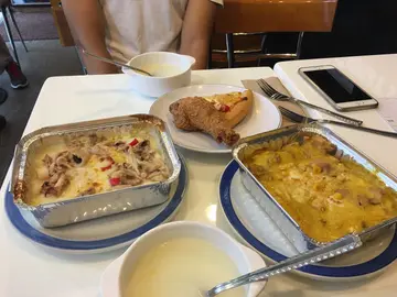 看见店员将食物翻热😂食物味道有酸味☹️环境卫生恶劣,餐枱上有上一位客人用餐后的污迹,要求店员再清洁一次。个人认为根本不值餐牌上的价钱🤦🏻♀️炸鸡肶味道偏咸。