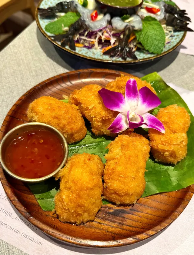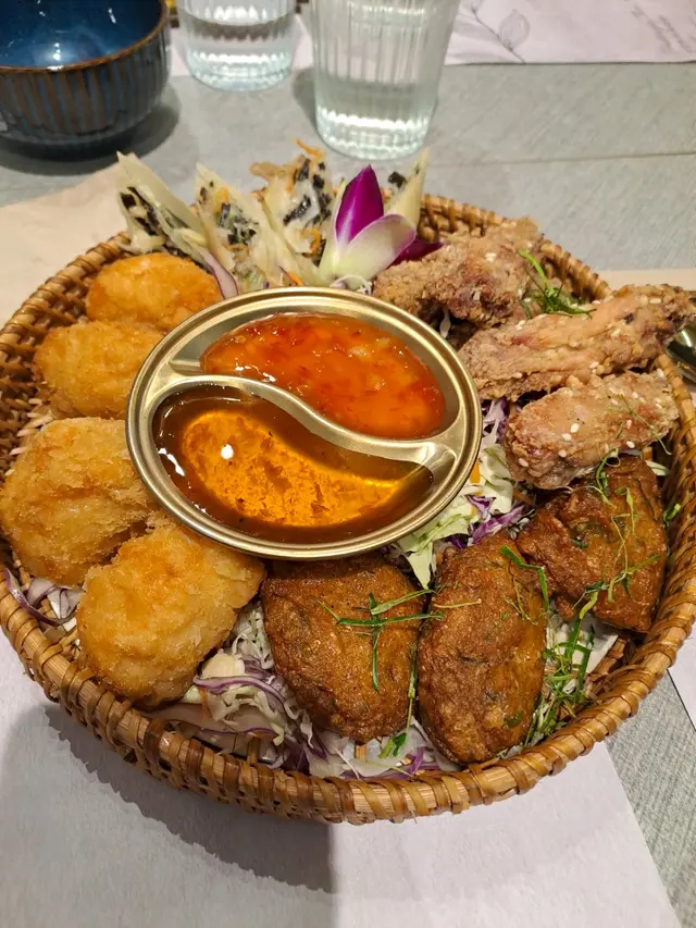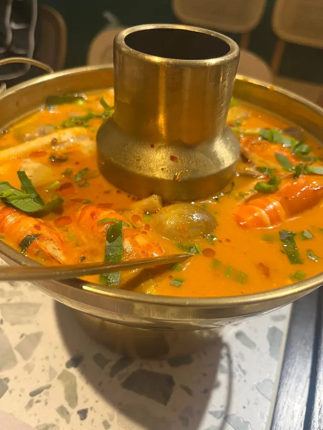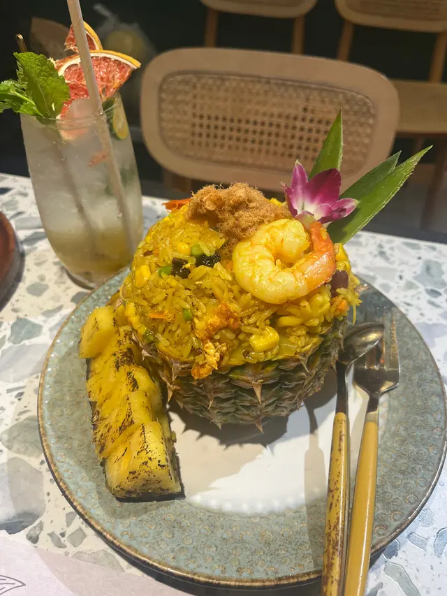 🍽️ 地道泰式風味,人氣爆棚餐廳食後感!呢間泰國菜餐廳大排長龍已成日常,即使已預約,都要等約十分鐘先有位,可見受歡迎程度非凡!🥖前菜蒜蓉包令人驚喜,外層搽上香氣逼人嘅蒜蓉醬,入面仲夾咗香脆烤蒜,蒜味濃郁卻不刺鼻,開胃一流。🍢 泰式小食拼盤包羅萬有:蝦餅、魚餅、春卷、炸雞翼,加埋招牌豬頸肉,外脆內嫩,香口惹味。另外,肉碎生菜包都保留住正宗味道,彷彿置身曼谷街頭。🍤 主菜冬陰功湯用料十足,湯底酸辣鮮甜,層次豐富,一啖即感受泰國靈魂滋味。🍍 菠蘿炒飯絕不遜色,飯炒得乾身粒粒分明,入面仲有蝦、青口同肉鬆,口感有層次,伴碟燒菠蘿亦香甜多汁。🥤 飲品選擇繁多,包括百香果梳打、蝶豆花椰子水、阿華田冰等,視覺同味覺都照顧周到,打卡之選。🍨 甜品方面,泰式奶茶沙冰濃郁香甜,椰子雪糕滑而不膩,完美作結。查看更多