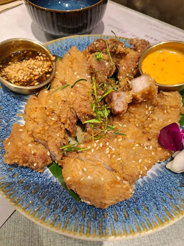 小店比較小,等位需時,但原來內裏有2層,等位比想像中快。小食拼盤看似豐富,每款都3-4件,入口香脆。脆炸五花腩別以為只有肥膏,但食落其實係層次分明,外層非常香脆,唔會好油,肉質唔會乾柴柴,保持到肉汁,讚豬頸肉生菜包調味唔錯,但偏辣特製蒜蓉包蒜蓉包軟熟,香蒜味出色鮮胡椒炒花甲花甲size比較小,份量亦唔算多,一般:)豬肉金邊粉味道正常。蝶豆花椰子水清新椰子水,加上藍藍蝶豆花嘅顏色,頗特別奶茶雪山泰式奶茶味道出色,入口味濃,加上餅碎和椰奶,層次感更出色。可惜比較細杯,唔夠喉。斑蘭香酥多士斑蘭味香濃,多士鬆化又香脆,仲有椰子雪糕,層次口感勁豐富,係最出色嘅甜品。整體食物都很美味,甜品更加有驚喜,下次可以再試更多菜式。查看更多