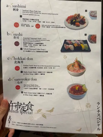 40款串烧 / 杂锦串烧定食 / 牛柳粒窝蛋饭 / 汁烧牛扒定食 / 特式寿司 / 烧鳗鱼春卷