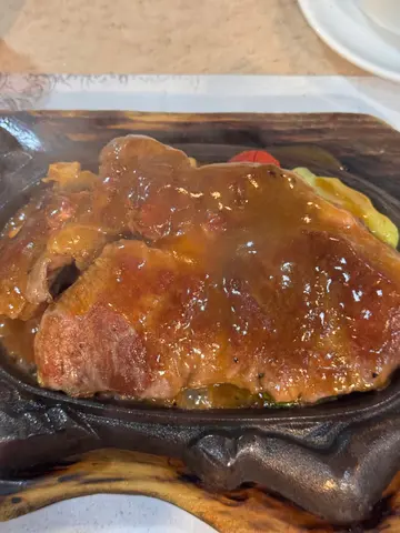 花园餐厅的铁板牛扒,应该好多人都试过,上桌时滋滋作响的声效与扑鼻焦香,已先声夺人!牛扒选材不俗,点了七成熟,外层微焦脆口,内里仍保持粉嫩肉质,咬下肉汁丰盈,黑椒酱汁浓郁惹味,与牛扒非常匹配。铁板热力持久,让每一口都保持温热,配菜如薯条、蕃茄仔,小棠菜等吸收肉汁后更显鲜甜。整体份量十足,性价比高,虽非顶级肉质,但以这价位而言,绝对是诚意之作,满足了大口吃肉的快感!罗宋汤一上桌味道是经典的港式风味,有番茄,蔬菜,牛肉,椰菜、红萝卜和洋葱,味道不过不失,口感尚算十足。汤头浓稠度不会过分糊口,与附送的牛油餐包更是绝配。…查看更多