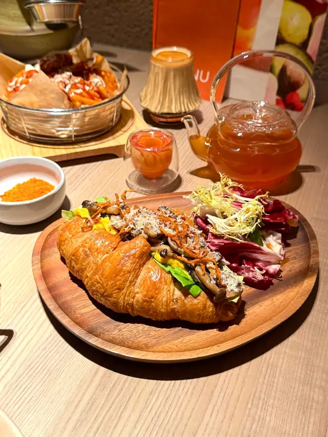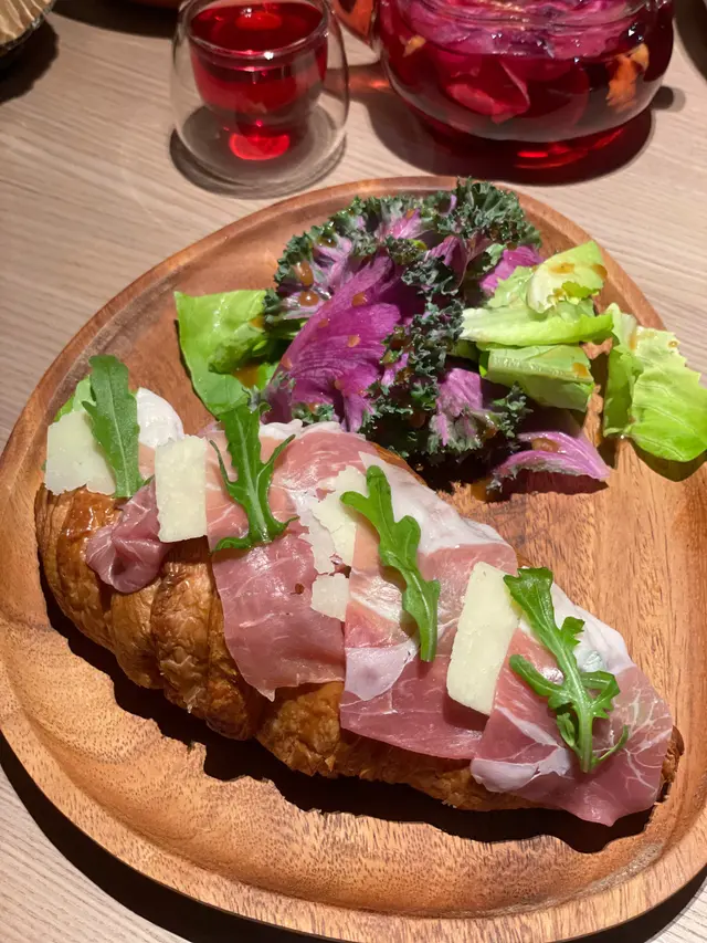 餐廳位於博覽館站B出口行2分鐘就到,超方便👍主要以健康輕食、咖啡同花茶為主,食物好精緻又靚,絕對係休閑及打卡集合之地📸✨餐廳環境真係超舒服,以木系色調為主整睇睇落好有透光感加埋花草🪴綠化植物🌳走入去🍴感覺好有朝氣同好Relax ☺️休閒放鬆💚牆上設計好似飛機窗口,同埋掛住花既🪻標本,襯托得好有特色,確實同wwwtc mall的Tomacado花廚有唔同嘅感覺,超級療癒🌿🍝壽喜燒·意大利粉Sukiyaki Angus Beef Spaghetti意粉沾滿壽喜燒汁,入口甜甜地加上牛肉、香菇同洋蔥,口感好豐富,估唔到成件事夾到,好味🤤🥗蜂蜜烤南瓜田園沙律Honey Roasted Pumpkin Salad分量好足,有南瓜、牛油果、鷹嘴豆、堅果同雜菜,清新健康,好fresh🌿🥐西班牙火腿芝士牛角包Serrano Ham and Cheese Croissant上菜個包仲係暖♨️牛角包好酥脆軟熟,裡面有西班牙火腿同芝士,帶有牛油香味,小編好鐘意食包🥹所以覺得真係好好味‼️推薦‼️🫖蔓越莓花果茶Rose & Cranberry Fruit Tea有玫瑰花、蔓越莓同蜂蜜,飲落去甜甜地酸酸地,清新又香甜,幾開胃,係養生及轉季時嘅完美選擇🌸☕️黑糖火山Dirty Brown Sugar Coffee咖啡同奶比例剛好,香濃可口,賣相唔錯,咖啡杯好似富士山🗻咁~黑糖溶得快,如果要打卡的話記得要快手啲😆真係相機食先📷…查看更多