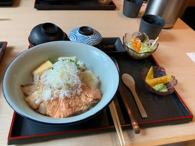 呢幢building 之前未嚟過,啲lift 好快,機乎唔使等,同厚福街真係無得比,餐廳係我鍾意嘅高樓底同寬敞嘅坐位,而最重點係背景音樂係我最愛嘅龍貓主題曲。睇menu 以weekday 嚟講單價唔平,不過而家set lunch做緊買一送一所以就唔同講法。點咗個魚生丼,望落已好吸引,由湯開始先,湯除咗有正常嘅豆腐同海帶外,竟然有秋葵,真係無見過,跟住係燉蛋,有雞肉,蟹柳同白果,幾唔錯,魚生丼真係好實在,魚生好多好多,應該佔60% ,而且好都新鮮,當中帶子都有大有細,三文魚都係厚切。另一個點咗天婦羅,雖然無跟沙律,湯……但配個烏冬份量都好多,天婦羅有蝦,南瓜,茄子…個粉都做得好好。每個set 128,加埋1,買一送一每位只需77,可以話物超所值, 喺經濟咁差,煩囂嘅工作環境下食個高質嘅lunch係一種小確幸。查看更多