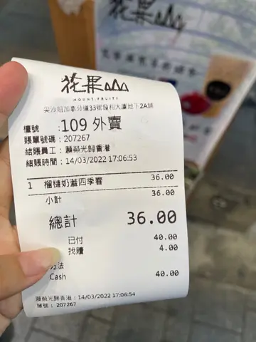 这间舖一直收藏在wishing list入面🙊榴梿粉丝🤤最近睇到有关舖头将结业嘅消息即刻的起心肝前往 (ps🐃住大西北 四处走 所以经常忘了去花果山嘅味道)榴梿奶盖四季春 $36茶中带一点点榴梿香🍵比想像中榴梿味比较淡榴梿味比茶同奶盖晒🥲🥲并没有其他人讲那么好饮个人觉得-食得榴梿钟意重口味🙊花果山 (尖沙咀)尖沙咀加拿分道33号发利大厦地下2A号舖Read More