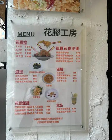 途经深水埗一带,这间花胶工房正好合我女友所需,所以就停下脚步👣选了几款当午餐店长满好人的,介绍著如何进食各式花胶小品,的的骰骰的设计也为这上世代产物增添了时代感花胶便当花胶鸡肉配饭$68相当意外地高质的花胶,食感软稔,入口即化的花胶并非一般车仔面货色,配合店长送的两款酱汁实在非常惹味其一为麻酱,麻香跟鸡肉(鸡腿🍗部位)十分相衬,creamy又带浓郁的芝麻香另一款是泰式酸甜酱,以酸度为主,入口相当开胃,在炎热的夏天如配乌冬或沙律🥗就更佳了花胶鸡汤$38加热两分钟就可以喝,入口非常creamy,完全感受到骨胶原的威力,还有些花胶鸡碎,鸡肉用以吊味也是不俗花胶杏仁露$48花胶甜食?杏仁露浓郁有口感,在花胶的辅助下更好吃更有层次自家柠檬🍋薏米水$20在夏天清热解毒的薏米水加入柠檬🍋,更开胃醒神,而且是每天自家制, 10分难得…查看更多