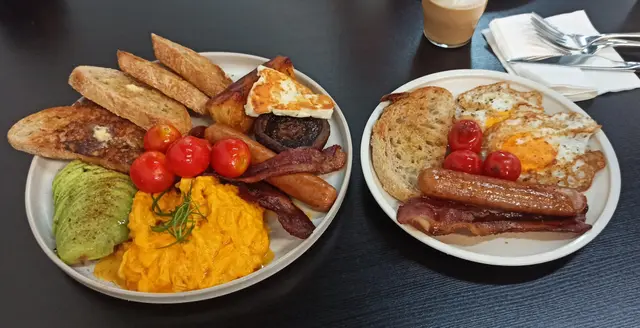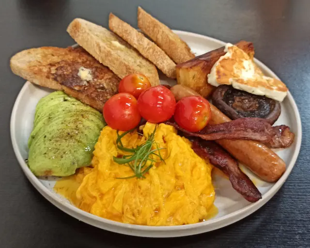 輕型($68)酸種麵包,有一片,微微烘過,塗上少量牛油,有咬口。煙肉,有一片,唔太咸。腸,有一條,脆皮,有彈性。雞蛋,可選炒蛋、太陽蛋、煎熟蛋,有兩隻,要咗煎熟蛋,正常。另外附送三粒車厘茄,微微烤過。曬冷($128)自家製千層薯,有一件,外層微脆,薯味足酸種麵包,有四片。煙肉,有兩片,呢兩片就乾啲所以有啲硬。腸,有一條。哈羅米芝士,有一片,兩面煎香,芝士味淡。燒烤菇,有一個,仍 juicy。車厘茄,有五粒。牛油果,布半個,切片,洒上少量黑胡椒,軟身夠熟。雞蛋,可選炒蛋、太陽蛋、煎熟蛋,要咗炒蛋,炒得唔錯,無過老。Dirty($30)第一次試,味道可以,夠滑,咖啡味不錯。Iced Mocha($35)朱古力味一般,味道可以。總括嚟講,食物製作用心,味道可以,室內環境及裝修普通,收費不便宜,地點不方便。主要做區內生意,小店要加倍努力。…查看更多