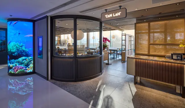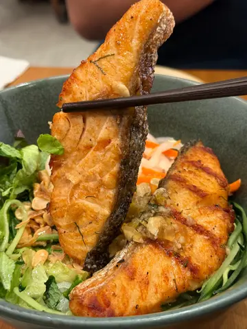 餐厅环境开扬舒适,以简约现代风格设计,厅内有大片玻璃窗,能够望向维港景色,白天可以感受阳光洒落海面,晚上则欣赏到港岛夜景的缤纷灯火,环境带有一种悠闲且放松的感觉。餐厅主打正宗越南菜,番茄蟹檬是其中招牌之一。这道菜的汤底用新鲜番茄熬制,酸甜清爽,带有蟹肉的鲜甜味道。汤里有啖啖蟹脚和蟹肉丸,配合弹牙的檬粉。三文鱼捞檬,三文鱼肉质嫩滑,每片都带有鲜甜感,配上特制酱汁捞匀,爽口又入味,捞檬粉Q弹烟靱。😁