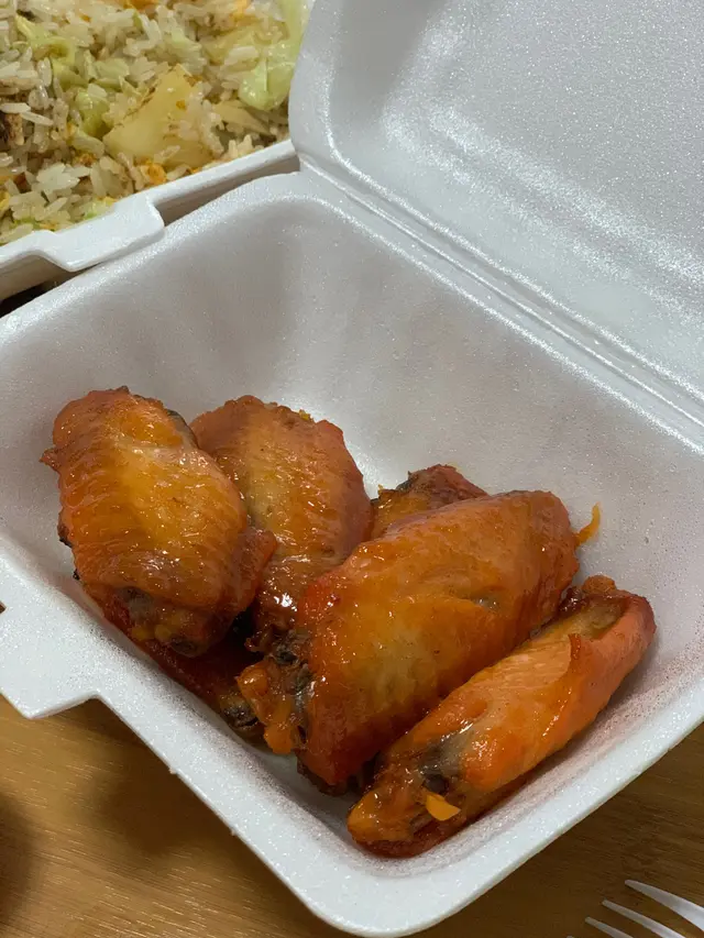餐廳位於繁華嘅新興街地點方便環境都幾舒服😌坐出面仲可以帶埋狗平時成日堂食 上菜速度快今次就外賣返屋企食1️⃣菠蘿雞絲炒飯⭐️⭐️⭐️⭐️菠蘿好新鮮香甜配合雞絲同炒到粒粒金黃嘅炒飯簡直一流 十分推薦2️⃣焗雞翼⭐️⭐️味道不錯 但略嫌有點乾而且有點少肉 雞翼吾夠大隻3️⃣炸薯條🍟⭐️⭐️⭐️餐廳用經典粗薯條🍟粗薯條外脆內軟炸得剛剛好而且又吾會太鹹整體來講味道很好服務都ok只係有啲貴野食飲品要分開叫但環境味道搭夠查看更多