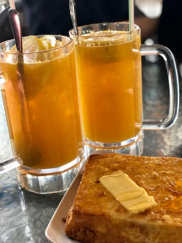 來到長洲,下午茶搵間餐廳坐下休息下,叫咗凍橙檸檬水同凍鮮檸水, 凍橙檸檬水係鎮店之寶, 個個人呢都會叫佢,新鮮橙汁加咗幾塊檸檬好大杯,感覺好抵飲;,仲叫咗西多士, 可以揀鍊奶或者糖漿,新鮮炸出嚟,都唔錯見到隔離枱大大碟肉絲炒麵,忍唔住都点咗個試下, 香噴噴好肚餓,食曬都唔記得影相 , 麵質爽 ,廚師炒得好味,正呀!食店外面都有幾張枱,方便帶狗人士。另外,呢度有酒牌,夜晚應該好多客人嚟傾計飲野,尤其受外國遊客歡迎。查看更多