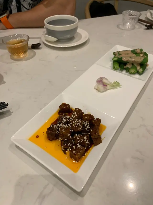 。待應推介有私房菜可以試下,今晚第一次黎試水$350/位,佢問有無野唔食等范太幫你諗食咩。好唔使諗正!中式Omakase,菜式以當日餐廳新鮮食材為準。涼菜係鮑魚伴麵超水準,蒜蓉粉絲蒸大扇貝,自家制酸齊,椰子粉葛燉瘦肉,清蒸馬友魚,豉油皇海蝦,豉油雞,清菜,蘢仔蒸白飯,完全無味精。一個字正!如果同我一樣有選擇困難症直接叫中式Omakase, 坐定定等食