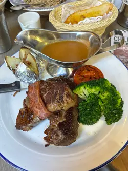今日午餐来了天盛商场这间茜廊餐厅!没想到下午时间人头涌涌,幸好餐厅座位很多,所以很快都安排入座了!看过餐牌食物选择种类很多,有午市套餐、意粉、饭、儿童套餐、铁板餐、小食等等应有尽有!看到午餐都能吃到铁板餐,而且铁板餐的选择也有很多款,有不同种类的肉选择!太美味了!我点选了香煎羊扒配鱼扒铁板餐!铁板餐热辣辣送上,淋上了香喷喷的洋葱汁!色香味俱全!羊扒超巨大,羊肉吃起来啖啖肉,味道非常不错!煎得的熟度恰到好处,肉质不会太韧,而且还能保持肉汁!除此之外,还有一件鱼扒,鱼柳啖啖肉非常嫩滑!整个配搭相当不错!仲有薯仔粒、萝卜粒等等的配菜,这个铁板餐又美味又丰富,而且非常饱肚!另外一客点选了午市套餐,龙虾汁海虾烩饭,烩饭做得相当出色,而且龙虾汁及海虾都充满鲜甜香气!所以每一啖饭都有满满的汤汁,鲜甜无比,极之惹味!仲有爽口弹牙大虾,同埋弹牙菇菌!每个套餐都会免费配上罗宋汤或忌廉汤的,忌廉汤相当足料,入边仲有满满的菇菌粒,相当有咬口!以及会配上又香又脆卜卜的蒜蓉包!正饮品方面,加配了一杯特饮,火龙果芒果特饮!相当足料,有满满的粒粒芒果果肉!配上了火龙果做成的果汁,非常清新清甜!啱晒炎炎夏日!另一杯是柠檬茶!正正常常的,非常解渴!…查看更多