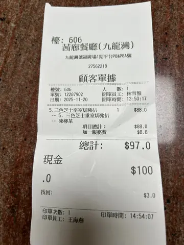 一个人今日去九龙湾西廊餐厅食午餐,呢间餐厅超过40年历史,当然系装修过,入内环境都算舒适,啲餐椅坐得好舒服;叫咗一个三色芝士皇室焗猪扒饭,跟一个蒜蓉包罗宋汤及一杯饮品,个罗宋汤好正宗有啲辣味,蔬菜都多,但系个饱就比较干,蒜蓉味唔足,猪扒饭嚟到卖相好靓,三种芝士焗咗之后好香及有拉丝,猪扒好厚及碎上,食起嚟有口感又方便,个焗饭底好香,个茄汁都足料,有蕃茄粟米洋葱蘑菇,比起其他店佢系冇咁重口味,份量适中,冻柠茶不过不失,侍应都算有礼貌,而且佢每一台客都比一个不锈钢杯帮你用热水浸住啲餐具清洁,值得一赞,咁多年水准都可以保持到,算唔错啦。…查看更多