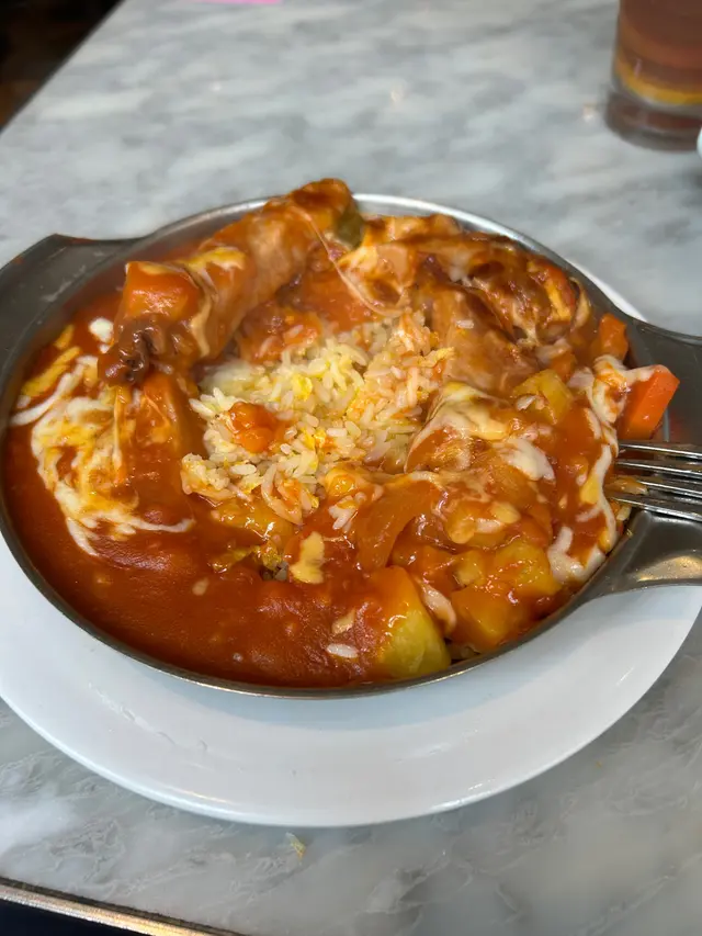 一個人今日去九龍灣西廊餐廳食午餐,呢間餐廳超過40年歷史,當然係裝修過,入內環境都算舒適,啲餐椅坐得好舒服;叫咗一個三色芝士皇室焗豬扒飯,跟一個蒜蓉包羅宋湯及一杯飲品,個羅宋湯好正宗有啲辣味,蔬菜都多,但係個飽就比較乾,蒜蓉味唔足,豬扒飯嚟到賣相好靚,三種芝士焗咗之後好香及有拉絲,豬扒好厚及碎上,食起嚟有口感又方便,個焗飯底好香,個茄汁都足料,有蕃茄粟米洋蔥蘑菇,比起其他店佢係冇咁重口味,份量適中,凍檸茶不過不失,侍應都算有禮貌,而且佢每一台客都比一個不鏽鋼杯幫你用熱水浸住啲餐具清潔,值得一讚,咁多年水準都可以保持到,算唔錯啦。…查看更多