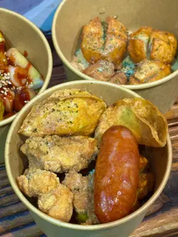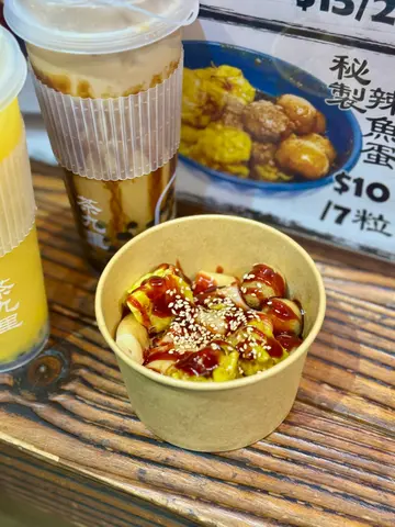【元朗小食出色手摇饮品店🥤茶九里】-收工放学想饮杯废水😋笃串鱼蛋😌茶九里一次过满足我两个愿望👏🏻😎佢嘅炸物出色👍🏻有啲似返到台湾嘅感觉!路过行过唔好错过😋-😋炸物拼盘🍤$40请容许我介绍咗小食先👍🏻因为真系俘虏到刚放工小编嘅胃😂拼盘有炸蛋饺、台湾肠、炸烧卖、花枝丸同埋盐酥鸡😍个盐酥鸡抵赞调味同豪大大差唔多,但系啲肉嫩滑好多!台湾肠皮脆肉香🫶🏻大大碌我钟意🙊总之就全部好食啦~好味指数:🌕🌕🌕🌕🌗-😋炸花支丸$20本身个拼盘系谂住拎埋返屋企同屋企人食嘅🤣点知一嚟已经清晒🙂↔️唯有加多个花枝丸👍🏻值得一赞系佢嘅外卖盒系特登剪咗个窿俾佢通风😎所以拎到返屋企都仲系脆嘅 !OMG!-😋肠粉三宝$22三宝有肠粉、陈皮鱼蛋同鱼肉烧卖🔥鱼肉烧卖系有咬口𠮶只😜加埋甜酱豉油麻酱同芝麻🤪经典组合!好味指数:🌕🌕🌕🌕🌘-😋黑糖珍珠鲜奶🧋$30一拎到手就知濑嘢🥹一杯但劲大杯想肥死人咩👀个黑糖冇话好香但啲珍珠又整得几好😌唔冧烟烟韧韧🫶🏻$30抵饮💰好味指数:🌕🌕🌕🌕🌑-😋百香芒果多多🥭$38想refresh啲就可以嗌呢杯百香芒果多多👀睇相都见到杯底沉咗好多百香果籽同埋芒果粒🥳坚足料唔系hea你😌加埋益力多酸酸甜甜👍🏻解腻之选好味指数:🌕🌕🌕🌕🌑-个人认为饮品还好😏不过小食就几正,而且价钱都有呵住大家嘅钱包🫶🏻食得过!-📍茶九里 (元朗)元朗福康街10号地下A2号舖…查看更多