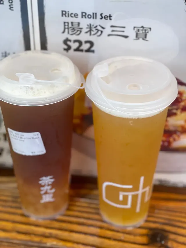 過完中秋,天氣依然炎熱,是日同朋友到左開心廣場附近買嘢,之後見有啲口渴又口痕,便去了一間茶飲店買嘢食,小店叫茶九里G9U,個名聽落幾潮咁喎😋飲品選擇幾多,小食就有台式炸物同港式腸粉魚蛋等。落完單等拎期間,都有四、五個人嚟買,仲有外賣員添,睇嚟小店都幾受歡迎,小食多人買自然新鮮好食啦。⭐黑糖珍珠鮮奶 & ⭐芝士奶蓋抹茶鮮奶點咗即沖嘅手搖茶,黑糖珍奶固定甜度,個黑糖味幾香,珍珠彈牙有咬口。另一杯芝士奶蓋抹茶鮮奶就可以揀少甜,抹茶味幾濃,芝士奶蓋後厚滑,幾好飲呀。⭐炸物拼盤炸物小食又好幾款一次過叫個拼盤就有齊哂,方便選擇困難症嘅客人。拼盤入面有海苔炸燒賣、蛋餃、台灣腸、花枝丸同鹽酥雞,即叫即炸熱辣辣香噴噴🤤個人至愛花枝丸,真係好彈牙好好食㗎。⭐腸粉三寶仲叫咗一份腸粉三寶,三寶就包括腸粉、咖哩魚蛋同燒賣。腸粉好新鮮,蒸得啱啱好唔過淋,甜醬、甜豉油同辣醬都落得多,上面仲灑左唔少芝麻更香口添,不過好似冇麻醬?蒸燒賣煙煙韌韌,同上面嘅炸燒賣食法唔一樣㗎😆咖哩魚蛋要咗辣味,不過其實都唔辣嘅,魚蛋有咬口都唔錯。⭐蒸粉果以前食街邊小食總會篤串魚蛋同叫隻蒸粉果多辣椒油,最近蒸粉果呢個小食已經漸漸消失😅見呢間有得食,叫返兩隻童年回憶先。粉果大大隻,皮雖然厚啲但入面都好足料,最正係加咗辣椒油同甜豉油,個味道出曬嚟。想買嘢飲同食下嘢又多個好選擇,下次口痕都可以嚟茶九里😋…查看更多