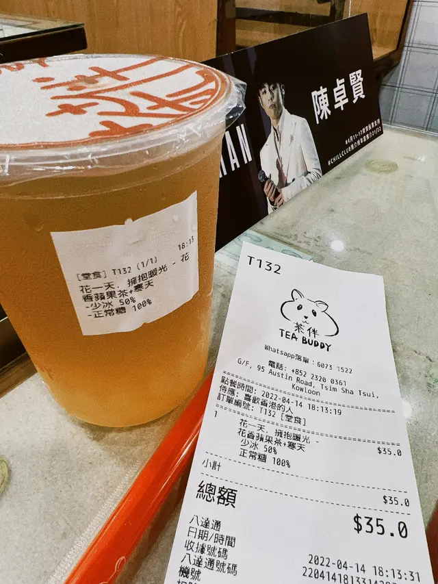 由於係私心,所以特登坐車黎🙈去到門口已經好多人排隊。。。上網search茶伴已經覺得呢間店咁可愛,用倉鼠做icon,再望定第一次飲咩好呢。。。見有人推介花香蘋果茶好清香,而今日又對奶類無興趣,所以好快就揀定花香蘋果茶喇🤪店員好好人咁問係咪Ian特飲?即係加埋寒天,仲解釋張單上面show既名會特別d~OMG,店員真係好貼心,之後當然好禮貌地問店員仲有無應援包,可惜今日已經派哂,不過店員都好好地話仲有手幅。。。店內外都佈置得好有心機😍讚!讚!讚!講返飲後感先~由於第一次飲唔肯定佢既甜度,加上有d食評話少糖有機會會酸,所以剩係叫左少冰,睇下佢正常既甜係點。。好彩都唔算好甜,不過下次都我會叫少甜試下。。寒天幾有口感,唔會太硬太稔。。清清地,好快就飲哂lu~🙈花香蘋果茶+寒天 $35查看更多