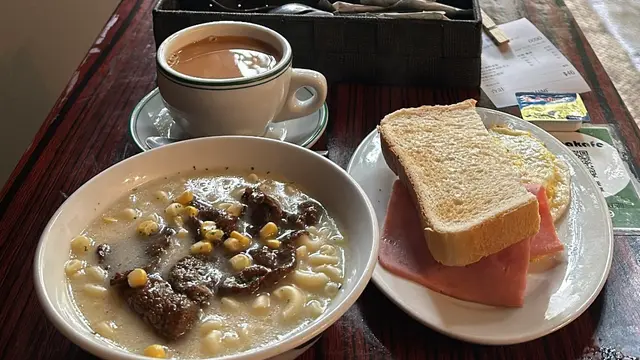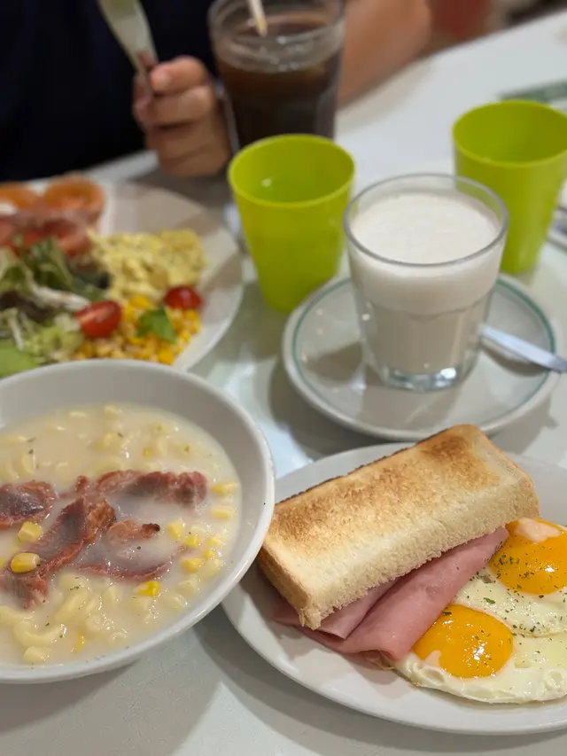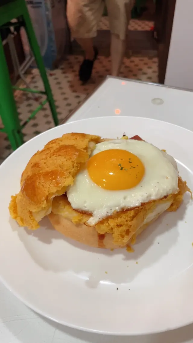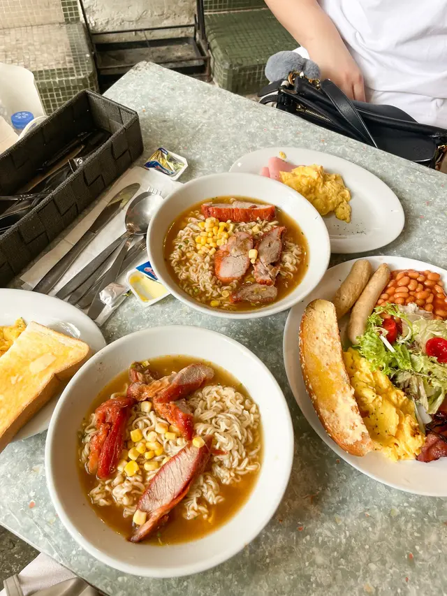 It was the first (maybe the second) day of her gallery showcase in SYP, and we had brunch at this alley back cha chaan teng. Crowded and being very lively, this place has both indoor and outdoor seatings, visitors brought their pets/ kids/ friends/ even came solo. Such a good place with the ultimate HK style pasta in hot broth. I picked the soup pasta with beef, and the set came with scrambled egg and ham, a piece of toast and a drink of your choice. We sat by the kitchen island and you can see the barista making your drinks hot and fresh. Very good quality, and this is exactly the good everyday Hong Kong breakfast/ brunch you crave for before you kick start your weekend. Special drink on menu: Orange breakfast tea! Usually there’s fresh lemon in hot breakfast tea in local cha chaan teng, this place innovates by switching to a thick fresh slice of orange, that’s a fabulous move! …查看更多