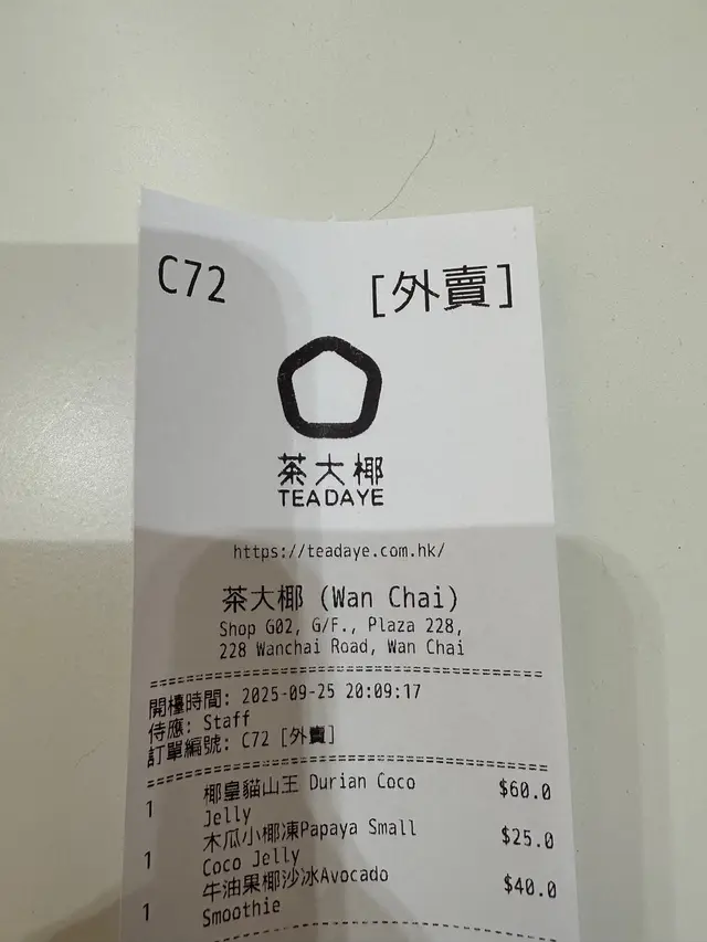 茶大椰 (湾仔) 网址: https://s.openrice.com/QrLS0ib8F00 地址: 香港灣仔灣仔道228號Plaza 228地下G02號舖 电话: +852 93907331
