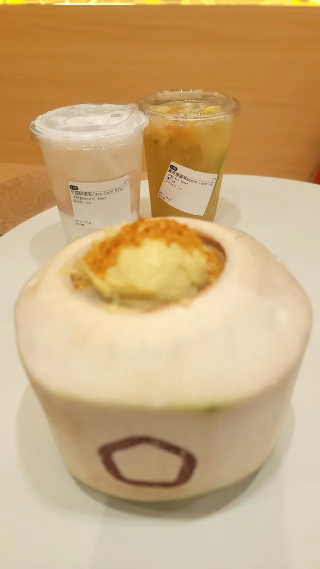 行街行到攰,咁啱見到茶大椰,即刻要介紹比fd,順便入去坐下🤣⭐️芋頭鮮椰乳本身見到芋頭嘅產品都幾乎必嗌,加椰奶嘅組合更吸引。鮮椰乳個質地比牛奶厚身少少,椰香味幾夠,同芋頭個甜味好夾。成杯飲落好滿足😋。⭐️黃皮檸檬茶朋友就話黃皮檸檬茶好少見,幾特別就叫黎試下。黃皮本身帶少少甘味,配落檸檬茶度,飲落好醒神😋。呢杯甜度剛剛好,飲完喉嚨好舒服,尤其係食完飯之後飲,感覺特別消滯解膩,好Fresh。👍⭐️椰皇貓山王彌補到上次嘅遺憾,上次冇曬,食唔到,基本上個椰皇底係一樣嘅,只係椰皇貓山王個面加左一大球貓山王嘅榴連肉😍,加埋一齊食,又食到椰凍嘅口感,仲有貓山王嘅味道,雙重滿足呀😍…查看更多