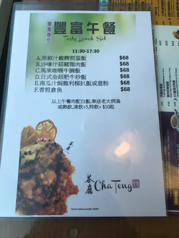 听说青衣有得睇红叶,第一次到访,原来唔系时候,不过,假日行吓公园都系好活动。好少去青衣城,咁大个商场,行吓行吓,有啲饿,朋友话想饮奶茶,嚟到2期见到呢间食肆,望完有下午茶餐就入咗嚟。由于未食午餐,考虑到食包唔够饱,所以我哋点了星洲炒米同褔建炒饭。等咗阵就,食物送到。估唔到下午茶份量都唔细。炒饭非常足料,而且有惊喜,有多只虾同瑶柱,啲虾爽弹,仲要唔系切粒,其他𩠌料有冬菇,红肠粒,火腿粒,红罗卜,翠肉瓜粒,炒底,$52加埋热饮,又够镬气,又冇重口味,坚推! 星米又系好出色,𩠌料又系有爽弹虾,而且火腿丝,红罗卜丝,青椒丝,加上洋葱丝,葱丝,颜色配搭加分! 唔算辣,少油,好味! *好耐冇食过咁好食嘅炒嘢!