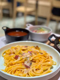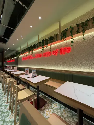 门面的红色光管灯很吸睛,内里灯光柔和,设有舒适的卡座、二至四人枱,座位不少,环境阔落,骨子企理。选择不少,有焗类、滑蛋包饭、洋风滋味、铁板饭、二及四人餐、披薄、饮品及甜品。主菜加钱配是日餐汤沙律及甜品($21),是日餐汤是罗宋汤,味道非常浓郁,啖啖充满酸香,越喝越醒胃。内有甘荀、西芹、椰菜等蔬菜,汤料丰富,味道美味。沙律 新鲜爽嫩,配了甘香的芝麻酱,简单美味。黑椒牛柳粒饭($68)大大碟,牛柳腍嫩,配上香辣惹味的黑椒汁,刺激味蕾,正!鲜蚬白酒烟肉蒜香意大利面($68)同样份量十足。蚬肉鲜味;烟肉咸香,扁意粉有嚼劲,淡淡蒜香,少油少咸,不错!甜品有三款蛋糕选择,我地拣了榛子摩卡蛋糕和柚子芝士蛋糕,两款都很精美。榛子摩卡蛋糕 松软,忌廉幼滑,啖啖朱古力和榛子香,好好味!柚子芝士蛋糕 酸酸地,口感细滑,啖啖芝味。草莓沙冰(+$12)成座山,大大杯,感觉好冰凉。真的冰凉透心,味道酸咪咪,好清新!热柚子茶($0)暖笠笠,酸酸甜甜好滋润。…查看更多