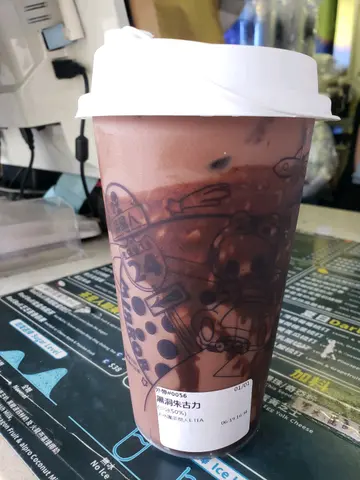 急不及待..见到职员制作时,沿住杯边,唧入好多朱古力酱🍫,见到都心心眼
