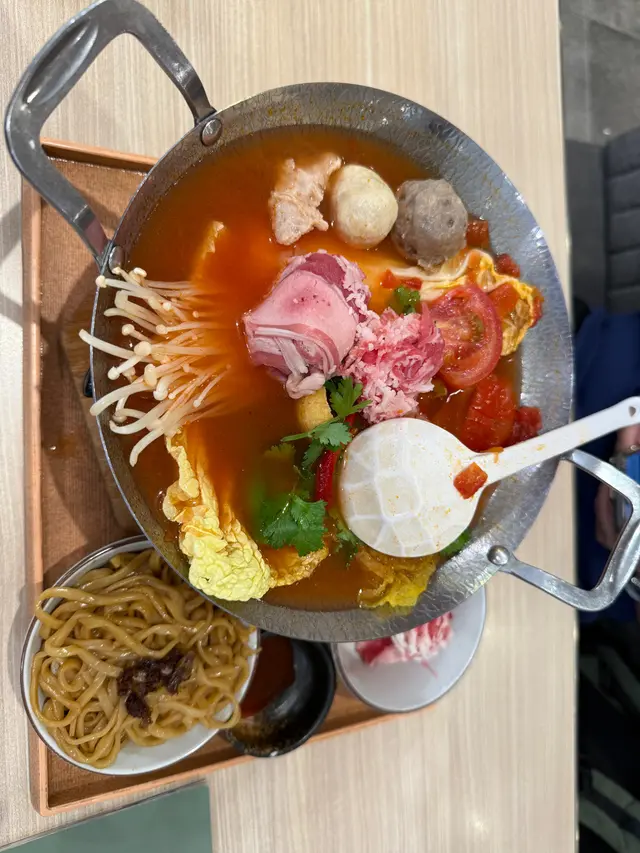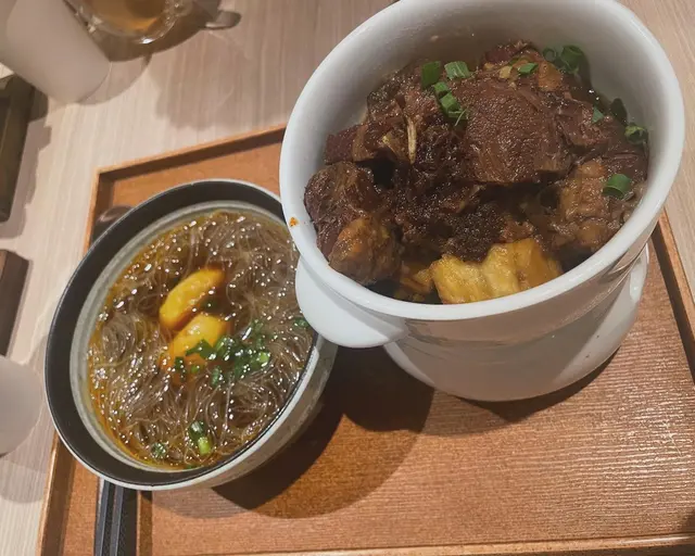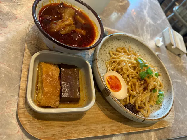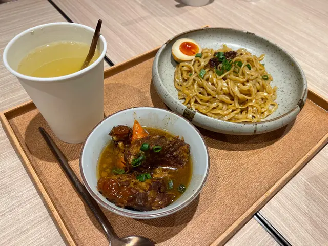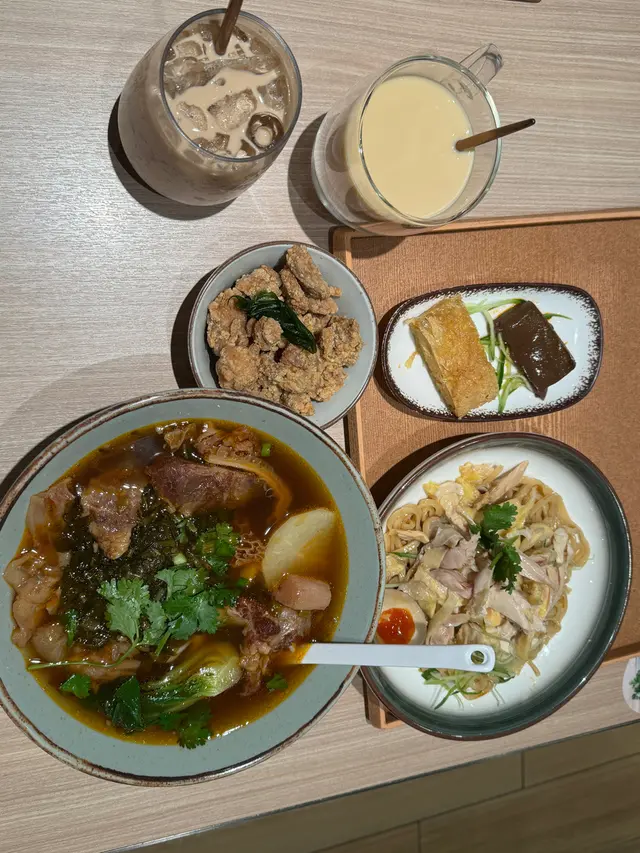 好耐冇食過茶木,估唔到而家午餐都要一百蚊啦😆,德福廣場分店都幾大,位置相對都闊落啲🤪❣️手撕鹽水雞椒麻手工拌麵+熱茉香奶綠 $84+$5鹽水雞味道濃郁😋,而且份量幾多,朋友唔食得辣,所以揀走椒麻,味道都唔錯👍🏻,手工拌麵煙韌彈牙,流心蛋蛋味香濃,仲有鴨血同埋素鴨😗,茉香奶綠就正常味道❣️Teawood牛三寶湯手作麵+凍黑糖仙草奶茶 $92+$5呢個就有啲小失望🥲,以前食湯底係好濃郁,而家個湯底就偏淡,牛三寶包括牛肚、牛筋同牛頰肉,牛肚牛筋都算腍,牛頰肉就略嫌有啲鞋,手作面都失去水準,麵質偏腍😅,黑糖仙草奶茶比較淡,而且冇乜黑糖味仙草比較碎濕濕,唔建議叫🥸❣️加配小食 金黃鹽酥雞半份 $24鹽酥雞新鮮炸起,食落香脆可口😋,配埋九層塔食更惹味🤓🏦是次消費總額 $231(人均消費 $115.5) 🍴須加一服務費👅好味度:7.5(10分滿分)茶木呢間分店嘅質素比起以前食退步咗,連招牌嘅牛肉麵都做得麻麻,而且價錢貴咗好多,今時今日應該可以有更加好嘅選擇😜🍽️ 茶木‧台式休閒餐廳 九龍灣偉業街33號德福廣場1期1樓G53D號舖…查看更多