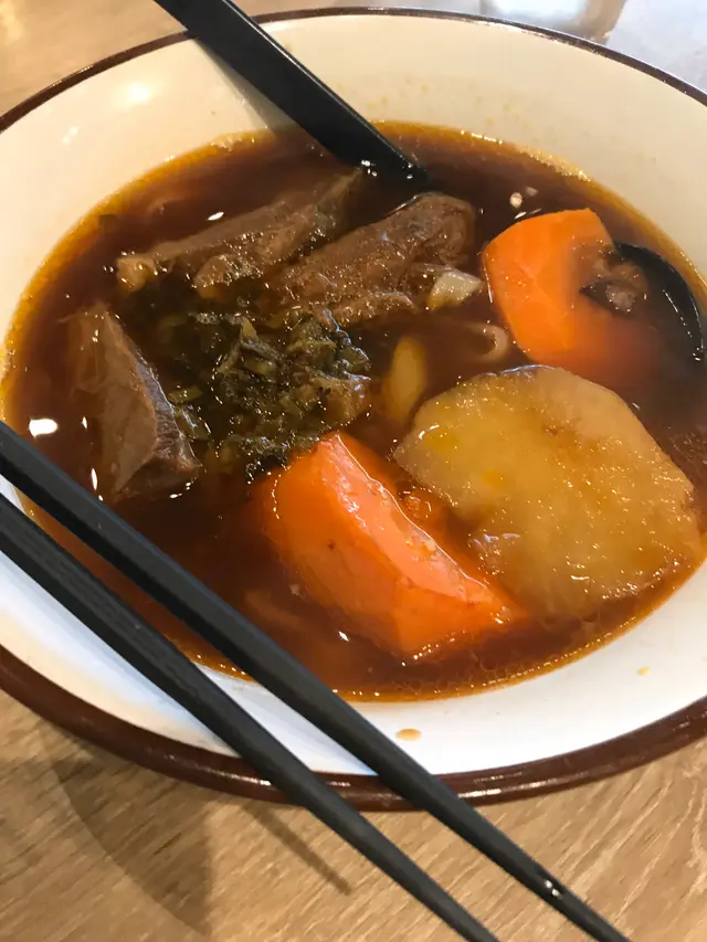 同同事入左黎將軍澳呢邊做野,又到午飯時間,佢話好耐冇食台灣菜,即刻諗起茶木,佢個甜品磚塊最出色,不過今次就冇叫,叫左2️⃣客午市套餐,價錢都幾抵食。由於鋪頭唔多人,即時可以安排入座,落單及出餐都很快手,坐得舒服。🔻紅蔥醬燒豬軟骨麵午市套餐係包埋飲品,呢個餐旁邊寫住(new) ,又係我鐘意食既豬軟骨,埂係要食啦,湯底濃味,豬軟骨亦好軟腍入味,麵都好煙韌,係我鐘意既口感。🔻香煎莎郎肉燥飯牛肉有咬口,煎得都幾香口,肉燥同溏心蛋配白飯一流查看更多
