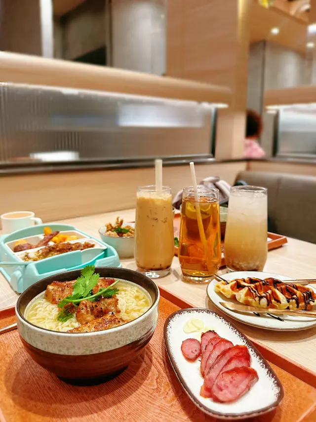 剛巧在屯門市廣場與朋友相遇,所以找一間可以吃甜品又可以跟朋友舒服地聊天的店下午茶時段人較少,下午茶選擇很多種類,但我們都不選擇主食,選擇是甜品(女生對甜品比較難抗拒🙈)(下午茶餐)巧克力曲奇蜜糖磚塊 ($78)3塊厚蜜糖多士,蜜糖多士中間切成一粒粒蜜糖磚塊,配上忌廉及巧克力曲奇雪糕,很邪惡我朋友比較喜歡吃蜜糖磚塊,而我相反比較喜歡吃多士邊邊,我們真的是互補🤣(下午茶配飲品)熱玫瑰蜜香紅茶(無糖)很香玫瑰味,配送的杏仁薄脆暖暖的,很香牛油及杏仁味,很好吃😋堂飲限定 凍小青桔黃皮綠茶($8)偏重小青桔味的綠茶,感覺很清爽奶蓋瀑布蛋糕(焙茶味)配草莓冰淇淋(Dreyer's)($68)下午茶餐加配可由原價$88減至$68,很抵超燶焙茶味奶蓋,吃起來不容易膩,幾層pancake夾著葡萄加奶油旁邊的草莓及葡萄很清甜,Dreyer's草莓雪糕中帶果肉配蛋糕很棒…查看更多