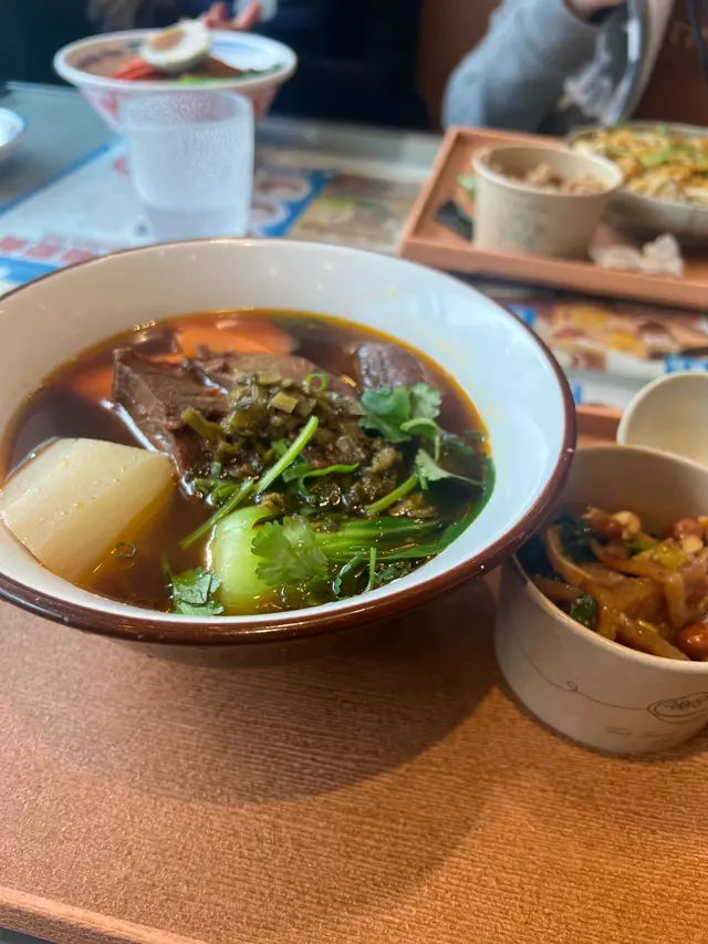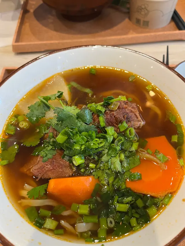 以前去茶木都覺得佢個牛肉麵幾好食,價錢又ok。但發現依加價錢都唔太親民,午市套餐都要$76,雖然包咗個小食同特色飲品,但碗麵份量唔算多,食哂成個餐先得8成飽🥲$76 台灣紅燒牛肉麵碗麻辣豬耳附送黑糖薑母茶 牛肉都有3大舊,煮得入味同淋,蘿蔔同紅蘿蔔都好食,唯一係d麵少咗d,大概3、4駐都食完,如果唔係有小食,$76既套餐真係唔太抵,又唔夠飽。其實整體味道都唔差,不過如果店鋪想行係快餐/類似茶記服務,$80一個lunch,份量可再加番夠d。…查看更多