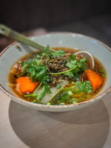 近日再次造访红磡的「茶木‧台式休闲餐厅」,作为享受日常美食的一站,这里的休闲氛围总能让人放慢脚步。这次重点品尝了酱烧猪软骨汤手作面与黑麻油鸡翅汤手作面,搭配热柠檬蜜香红茶及家乡豆浆,整体而言是一次舒适而稳妥的用餐体验。酱烧猪软骨汤手作面的汤头浓淡适中,猪软骨炖得软腍入味,与手作面一同入口,口感融洽;汤汁的咸度调和得恰到好处,温润顺口。另一道黑麻油鸡翅汤手作面,汤底温和朴实,鸡翅肉质嫩滑,虽麻油香气较为含蓄,但整体风味平衡。值得一赞的是面条的软硬度处理得十分出色,弹牙有致,为汤面增添不少分数。热饮方面,柠檬蜜香红茶酸甜清新,蜜香轻柔;家乡豆浆醇厚暖胃,两者皆为餐点带来圆满的收结。服务保持一贯的亲切,环境整洁,适合个人或轻简聚餐。总的来说,茶木在基本菜式的把握上展现了诚意,尤其面条的质感令人满意。若追求一份不花巧、暖胃饱足的台式风味,这里仍是值得考虑的选择。Ref: XXV0923…查看更多