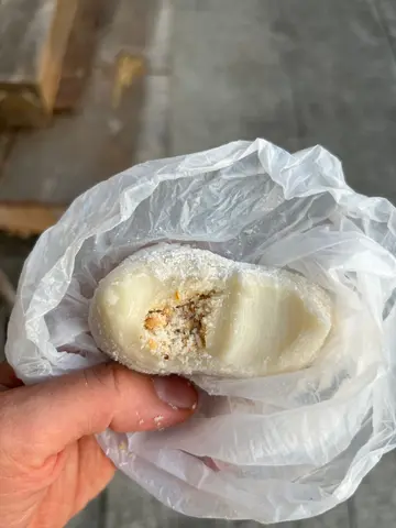 除左大澳的必食沙翁之外每次黎大澳都会行过黎买个糯米糍唔知系咪配合埋大澳的环境加埋系伯伯每日整系特别好食既!曾经食过一次茶果都系唔错🤓但真系要好早黎先会买到茶果至于糯米糍去到黄昏时间都仲有糯米糍有两种口味花生/豆沙因为对花生敏感只可买豆沙味切开黎睇 粉皮厚薄适中 够哂软熟红豆蓉够棉密 仲有少少红豆🫘口感甜度刚好称心满意通常我地都会接近黄昏黎买完个糯米糍行去附近一路欣赏日落一路食住个糯米糍黎大澳都系想咁啫😃…查看更多