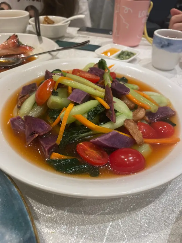 男朋友媽咪生日,嚟食佢嘅生日飯⭐️.✨鴻運燒味大拼盤 & ✨頭抽三皇走地雞個大拼盤有:燒肉、叉燒、油雞、燒鴨、青瓜👈🏻。我最鍾意燒肉‼️好欣賞個燒肉好少肥膏,少有嘅瘦肉😍叉燒好食;雞鴨入味.✨豉油皇海生蝦好似軟殻蝦咁,我就咁食埋啲殼,唔錯.✨紅燒竹笙海皇羹好特別,裡面有好多「蝦仔」,質感+味道上 就好似翅咁.✨順德脆奶卷拼金磚豆腐簡單講就係炸鮮奶同炸豆腐,我最鍾意呢個‼️整得好好食😋👍🏻外皮好酥脆 鮮奶同豆腐本身嘅味仲保留到😙😙.✨清蒸大紅東星斑OK啦,我覺得魚味好似冇咩🤔.精美甜品: ✨杞子桂花糕聞落好香,食落甜甜地 幾清新,質地上好似jelly咁,有種微微煙韌感😳🙈.✨萬紫千紅泡田園蔬 ✨瑤柱蛋白炒飯 ✨XO醬翡翠螺片我冇食到 所以比唔到食評🙈😂不過聽佢地講「萬紫千紅泡田園蔬」啲菜、「XO醬翡翠螺片」嘅螺片係幾好食。.其實我覺得食物係普通嘅,不過都係自在有個氣氛 有個環境聚下餐🤔服務員都幾好嘅,主動同老人家傾計💬查看更多