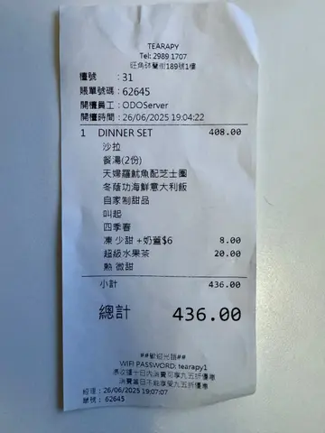 最近同朋友倾开计,知佢逢星期三要去旺角,就早几日约佢去旺角食饭,我哋都几肚饿,之前上网见到呢间餐厅成日都好想试,个日去到都好多人,去到等咗一阵先有位🌷去到坐低职员会比QR code你落单,我哋见到好多选择,不过我地有选择困难症所以我哋叫Dinner set(2️⃣人份量)今次dinner set (2️⃣人份量)都系2百蚊就有6️⃣样野😻😻😻CP值超高😋😋😋👉主食(4选1)👉main dish (4选1)👉自家制甜品-开心果芝士蛋糕一落完单职员见到我哋叫二人餐即刻帮我哋换张四人枱,话啲嘢食上得好快,惊我哋唔够摆😂平时晚餐都$差唔多要2百蚊位,都系得个汤同主食。。沙律🥗餐厅自己调教嘅汁,酸酸甜甜几开胃餐汤 🥣新鲜蘑菇打磨成汤,好重蘑菇味,而且饮个时温度够热,饮落好舒服好暖胃小食(3选1)🦑我哋拣咗天妇罗鱿鱼配芝士圈,好大份,鱿鱼系鱿鱼须,口感非常之好,好鲜味,唔会好韧,芝士圈好重芝士味,而且好厚实主食 牛肝菌意大利饭配香煎鹅肝🪿一上枱已经见到个饭好精致好靓,香煎鹅肝入口即溶,个饭入边夹住好大件牛肝菌,每一啖都食到牛肝菌嘅味道Main dish 伊比利亚橡果黑毛猪鞍扒🐷上碟用青苹果去烟熏,令到猪鞍个味道更突出,再配埋酱汁食,好Juicy开心果芝士蛋糕🍰开心果同芝士好夹,好重芝士味,入口即溶朱古力蛋糕🍰(另外自费)朱古力味非常之重,一放入口感觉自己食咗好多件朱古力,好似比朱古力包围着口腔但又唔会觉得腻开心果椰香咖啡☕外观有层次感,一半咖啡一半开心果,杯边仲有开心果酱同开心果做装饰芝芝芒芒🥭唔太甜用新鲜芒果整,奶盖同芒果都好match整体感觉服务一流,食物好味道,又有得打卡,值得回头的一间餐厅💖💖💖…查看更多