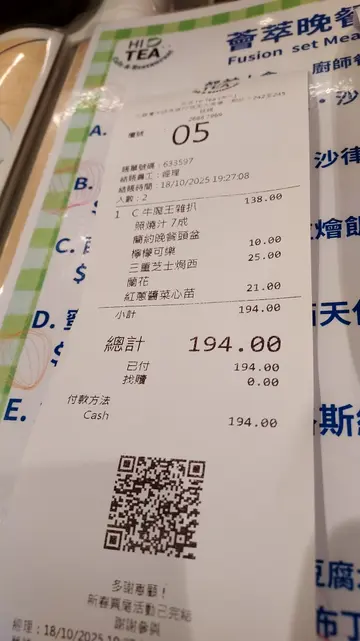 淘大商场食肆很多,如果不是朋友带路,就会错过了这间貌似一般茶餐厅的店铺,因为店铺的位置比较隐蔽。星期六下午六时半前入座,客人还不算太多,职员给了我们二人一个靠窗的卡位,非常舒适。我们食量不大,叫了一个「简约晚餐」:牛魔王杂扒餐,另加了两道小菜:三重芝士焗西兰花、红蓖酱菜心苗。「简约晚餐」其实一点不也不算「简约」,包餐汤、饮品和前菜及沙津。前菜的小鱼饼几特别,喜欢辣的朋友应该会喜欢。我们叫的杂扒餐份量很大,除了厚切的牛柳、安格斯牛串标外,还有两大件盐烧牛脷。朋友和我怕生,所以叫了七成熟,牛柳很腍,肉汁丰富,以茶餐厅的价钱吃到西餐厅的质素,我俩已经很满足,不过我最喜欢的是盐烧牛脷,很腍很惹味。小菜方面,叫了最平凡的菜心苗,平日吃菜心通常都是加蚝油,这个「红蒽酱」味道很有特色,我个人认为跟菜心配搭起来很有新鲜感,喜欢浓味的朋友,应该会十分喜欢。餐中有一段小插曲,就是后来人较多时有一对较年长的夫妇入座,就坐在我们附近的二人桌,那些椅子比较矮,可能长者坐得不太习惯,我看到夫妇向职员提出后,职员便随即帮他们换上高身的椅子,服务态度值得一赞。…查看更多