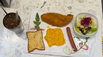下午茶时间有啲肚饿,特别想食肉,见佢哋下午茶有得食扒就入黎食😚🍽️用餐人数:1▪️百搭HiTea$45-迷你肉酱意粉❗️推荐(忍唔住要额外比⭐️⭐️⭐️⭐️0.5)本身系好想食肉类,后尾食完呢一个肉酱意粉真系好惊喜,因为佢嘅肉酱同啲芝士同埋意粉个份量系平衡得好好,好足料,咸味嘅芝士再加一啲蕃茄同埋肉酱简直系绝配,同埋意粉接近六成腍嘅程度👍🏻唯一唔好嘅地方有啲油🙈-香煎薄牛扒下午茶餐以为个扒会好细块,点知佢好大块!口感有啲似沙嗲牛肉嘅口感会再有咬口一啲,然后有啲部分有牛筋有啲难咬,但系其他都容易咬嘅,同大多数餐厅一样都系黑椒汁,都几好味▪️牛油鸡翼$19呢个鸡翼最重点嘅地方够脆,食落香脆同埋带啲咸味,冇好特别😚…查看更多